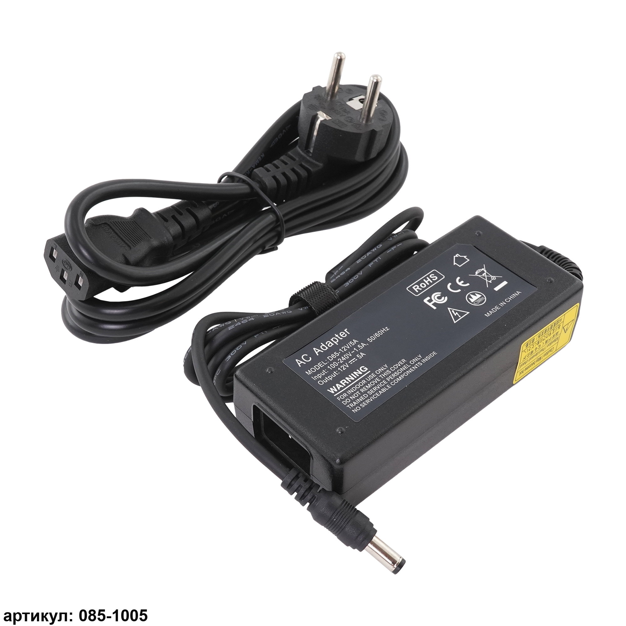 Добрый день, в наименовании все указано, Блок питания для лед подсветки 12V 5A (60W) 5.5х2.5мм пластиковый