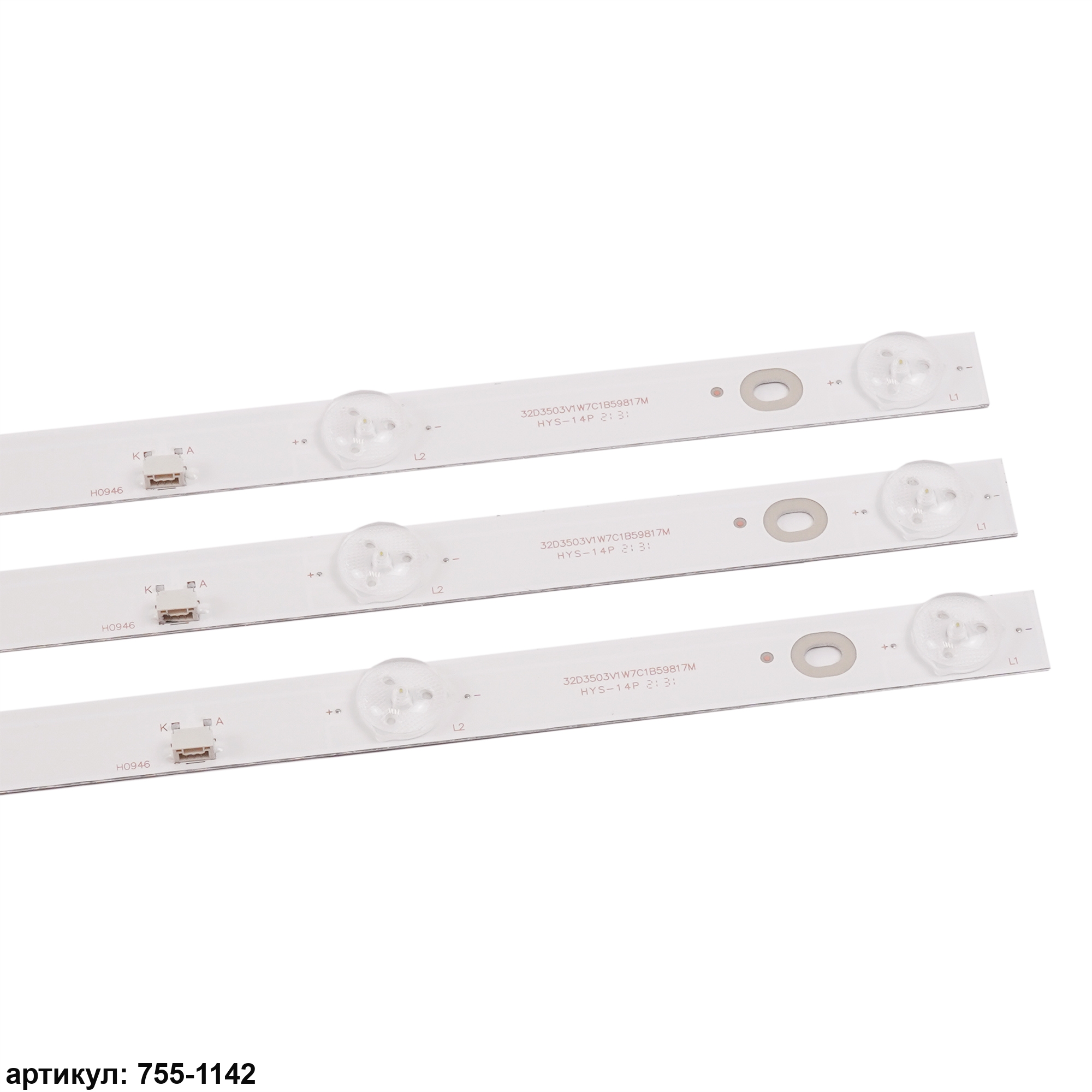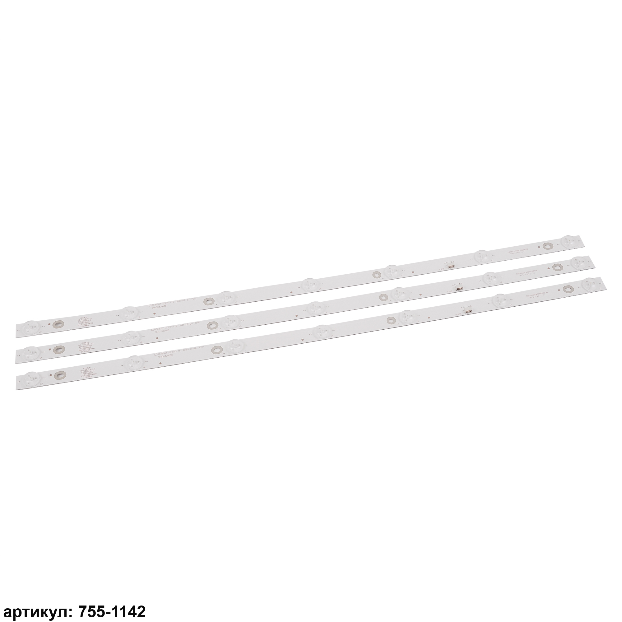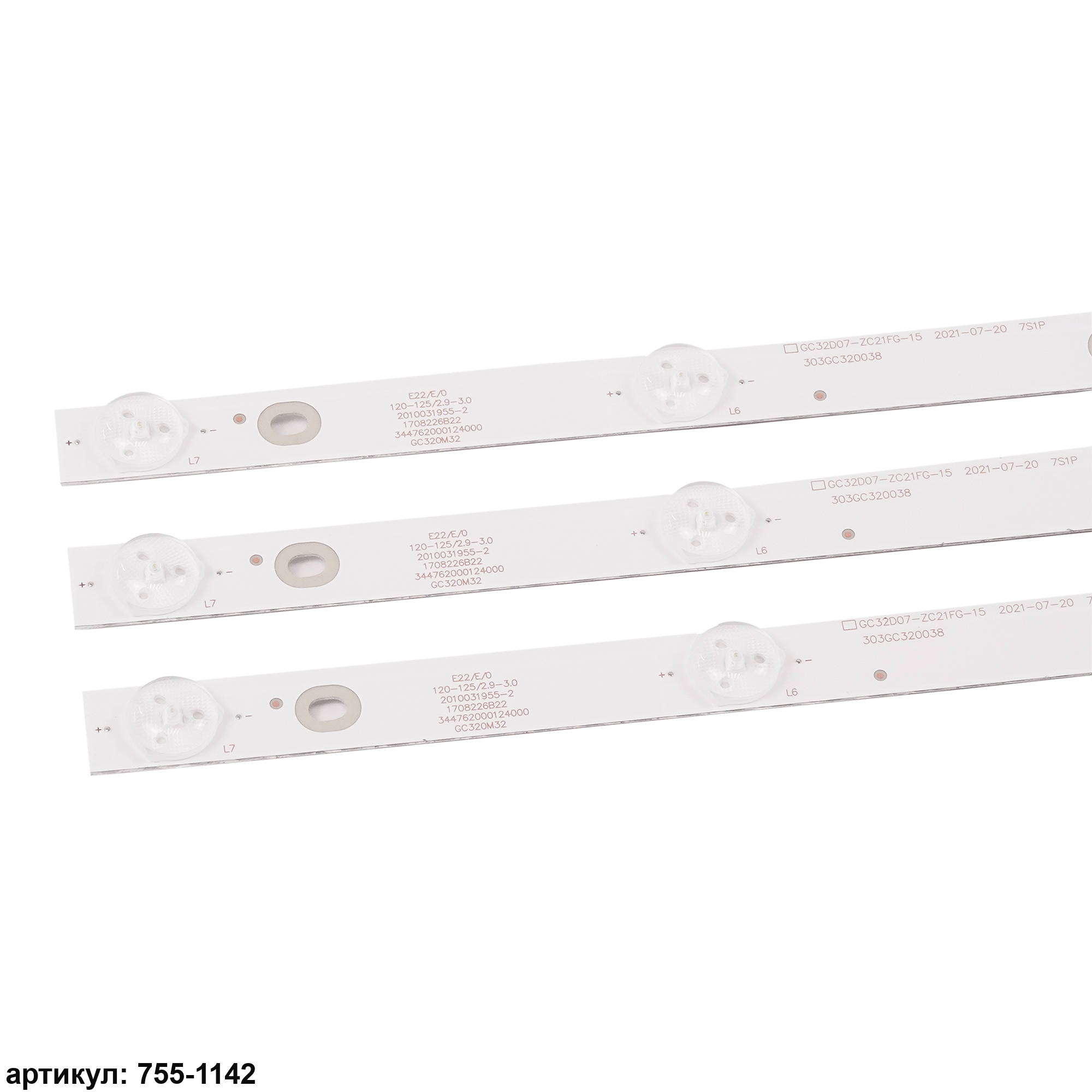 Комплект планок светодиодной подсветки для телевизора Philips 32'/ (7 led 3V 598mm) Комплект включает в себя:- 3 планки GC32D07-ZC21FG-15Совместимые p/n: GC32D07-ZC21FG-15, GC32D07-ZC21AG-29, RF-EG320B32-0701S-07A1, CRH-F32JL43535T03075C1, A9L06H26PEA3764F, ShineOn 2D02296 Rev.E, 303GC32003C, 303GC320050, 2447622330T-02, 303GC320038Подходит для моделей телевизора: Philips 32PHF3001, 32PHF3021, 32PHF3061, 32PHF3559/T3, 32PHF5011/T3, 32PHF5061/T3, Haier LE32B310P, LE32B510X, Rolsen RL-32S1502T2C, Shivaki STV-32LED15, Mystery MTV-3224LT2, DEXP F32D7000B, Daewoo L32S65FVBE