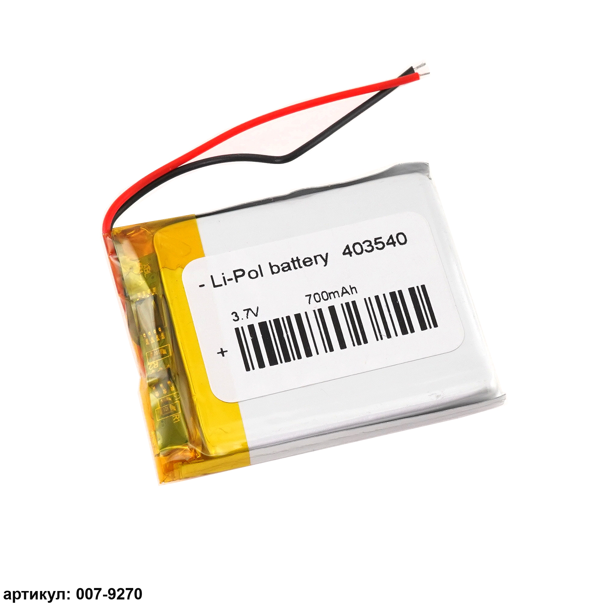 Аккумулятор 3.7v 700mAh 40x35x4мм (2 pin)