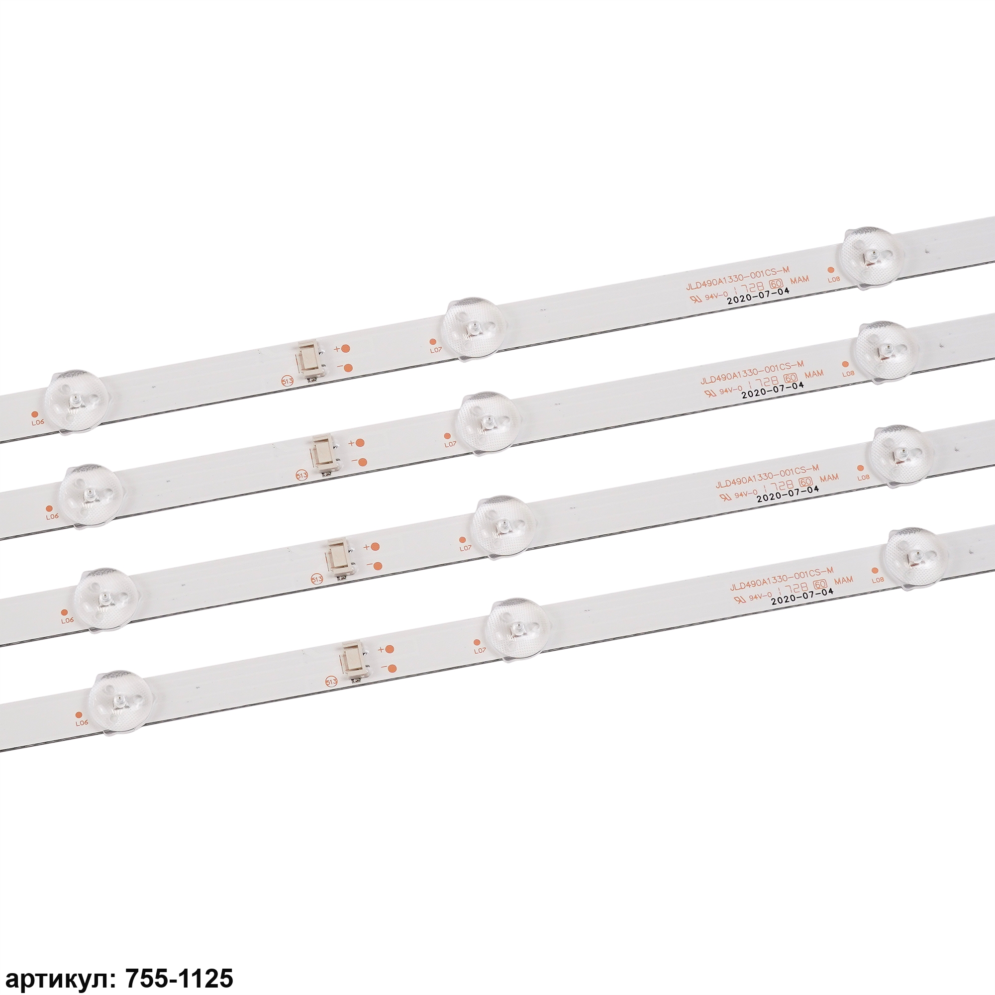 Комплект планок светодиодной подсветки для телевизора LG 49'/ (10 led 3V 945mm) Комплект включает в себя:- 4 планки JL.D490A1330-001BS-MСовместимые p/n: JL.D490A1330-001BS-M, JL.D490A1330-001BS-M2, YAL13-01030300-04Подходит для моделей телевизора: LG 49UJ6200, 49UJ6200-UA, 49UJ620V, 49UJ6200UA, Philips 49PUF6072/T3, Skyworth 49M9