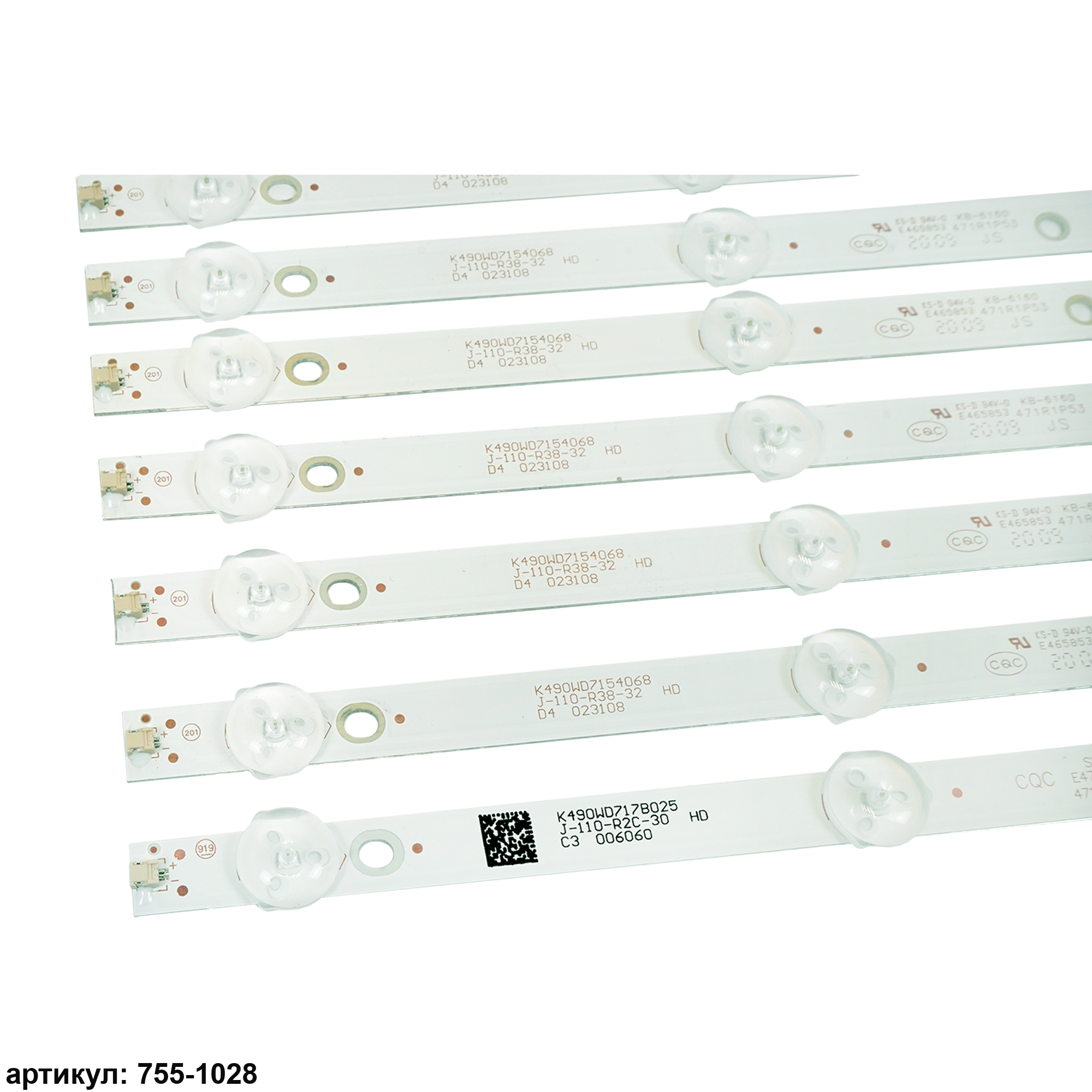 Комплект планок светодиодной подсветки для телевизора Philips 49' / (6 led 6V 505mm)Комплект включает в себя:- 8 планок K490WD7 A2 K490WD7154068 J-110-R38-32- 1 планку K490WD7 A1 K490WD717B025 J-110-R2C-30 (с двумя разъёмами)Совместимые p/n: K490WD7 A1, K490WD7 A2, 4708-K490WD-A2213K01, 4708-K49WD7-A1213K11, 4708-K490WD-A1213K21Подходит для моделей телевизора: Philips 49PFL3445/T3, PH49PFG5001/78, 49PFF5250/T3, 49PFF5455/T3, 49PUF6050/T3; DEXP F49B7000T; Erisson 49LES78T2; Rolsen RL 49D1509FT2C; TOSHIBA 49S3650EV; QSTEN OTD49AF313ZKB