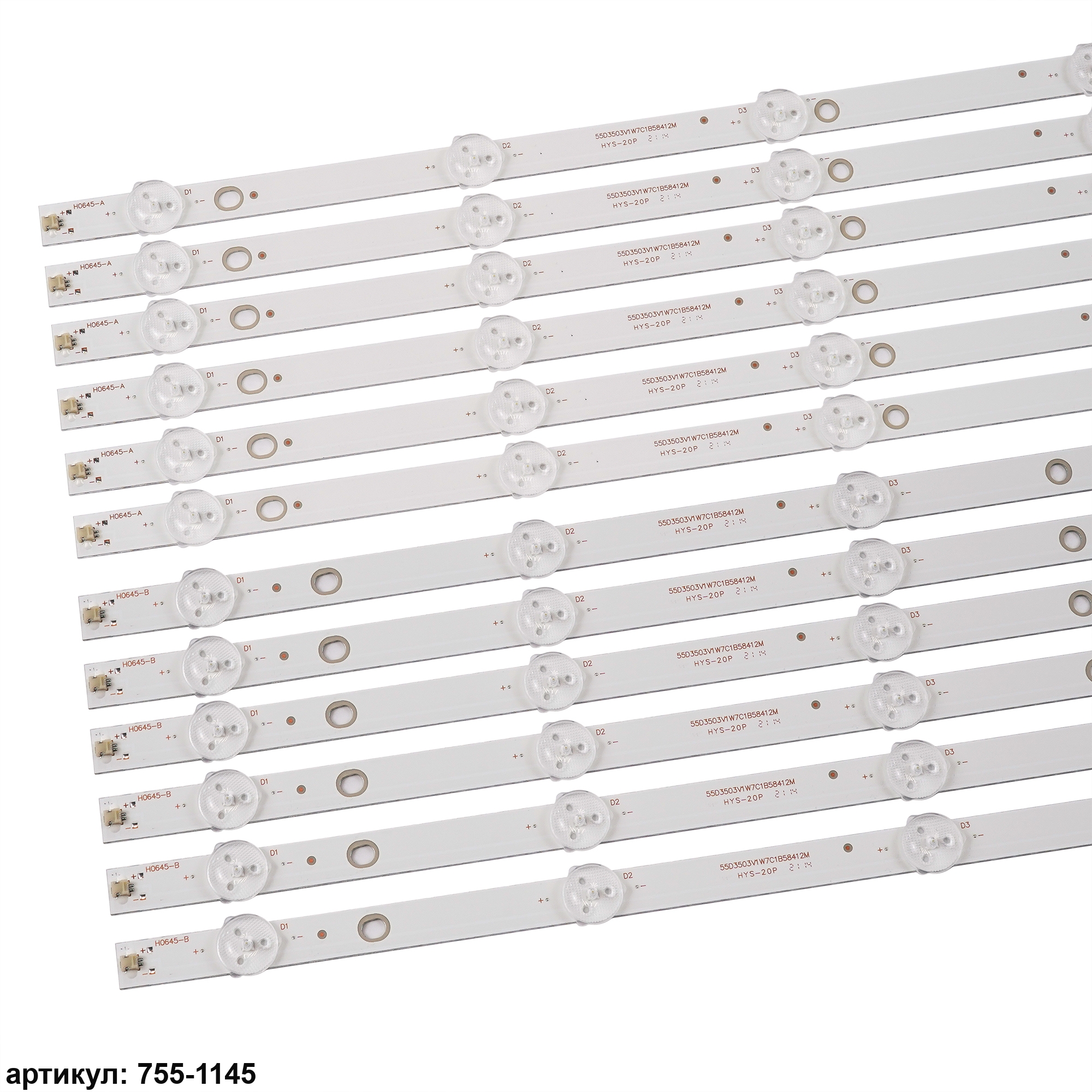 Комплект планок светодиодной подсветки для телевизора Philips 55' / (7 led 3V 584mm)Комплект включает в себя:- 6 планок 4708-K550WD-A4213K31 type a- 6 планок 4708-K550WD-A4213K21 type bСовместимые p/n: 4708-K550WD-A4213K31, 4708-K550WD-A4213K21, K550WD7 A4Подходит для моделей телевизора: Philips 55PFF5250/ T3, 55PUF6056, 55PFF5250, 55PFF5055, 55PUF6051