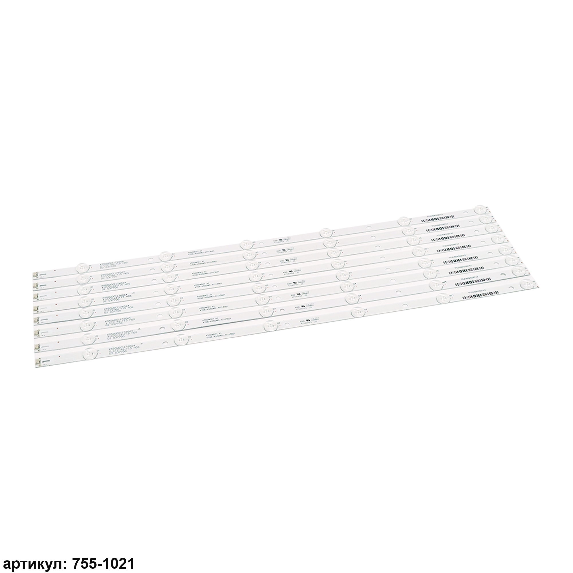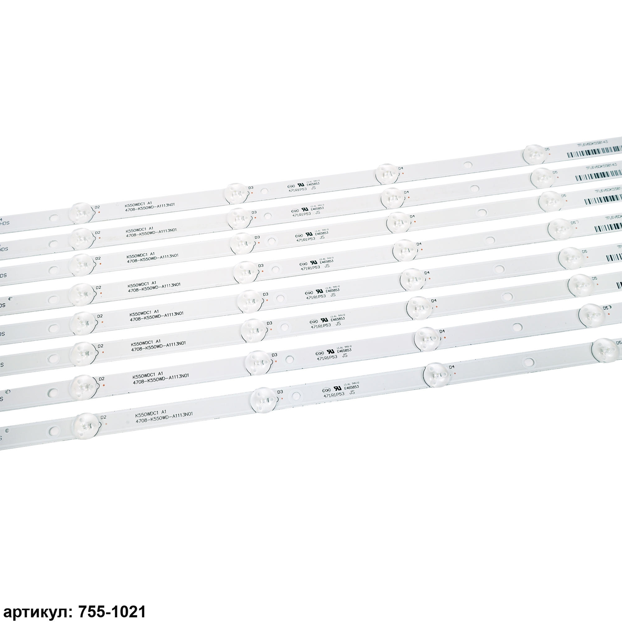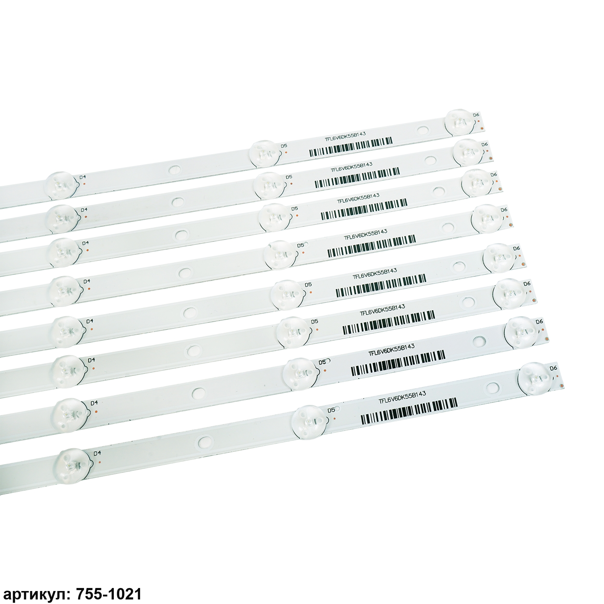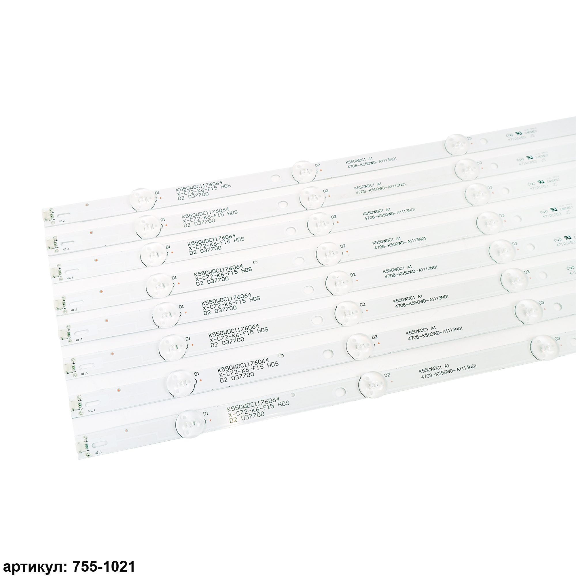 Комплект планок светодиодной подсветки для телевизора Philips 55' / (6 led 6V 543mm)Комплект включает в себя:- 8 планок K550WDC1-А1, 4708-K55WD-A1113N01Совместимые p/n: K550WDC1-А1, 4708-K55WD-A1113N01Подходит для моделей телевизора: Philips 55PUF6092, 55PUF6022, 55PUF6263