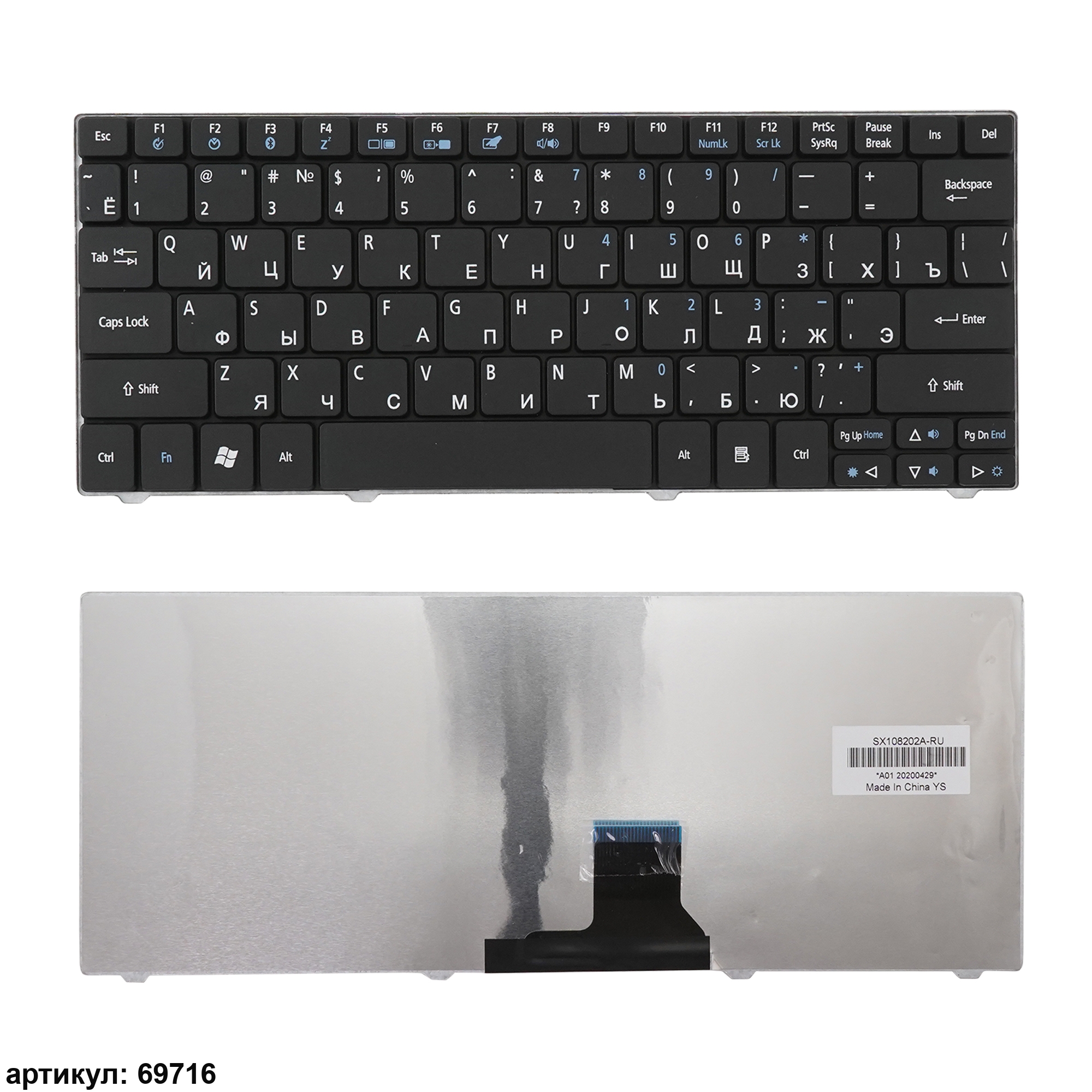 Клавиатура подходит к ноутбукам: Acer Aspire 1410, 1410T, 1425, 1425P, 1430, 1430Z, 1551, 1810, 1810T, 1810TZ, 1830, 1830T, 1830TZ, Travelmate 8172, 8172T, Aspire One 721, 722, 751, 751H, 752, 752H, 753, 753H, Ferrari One 200, Gateway EC13, EC14, EC19C, LT31, LT32, LT33