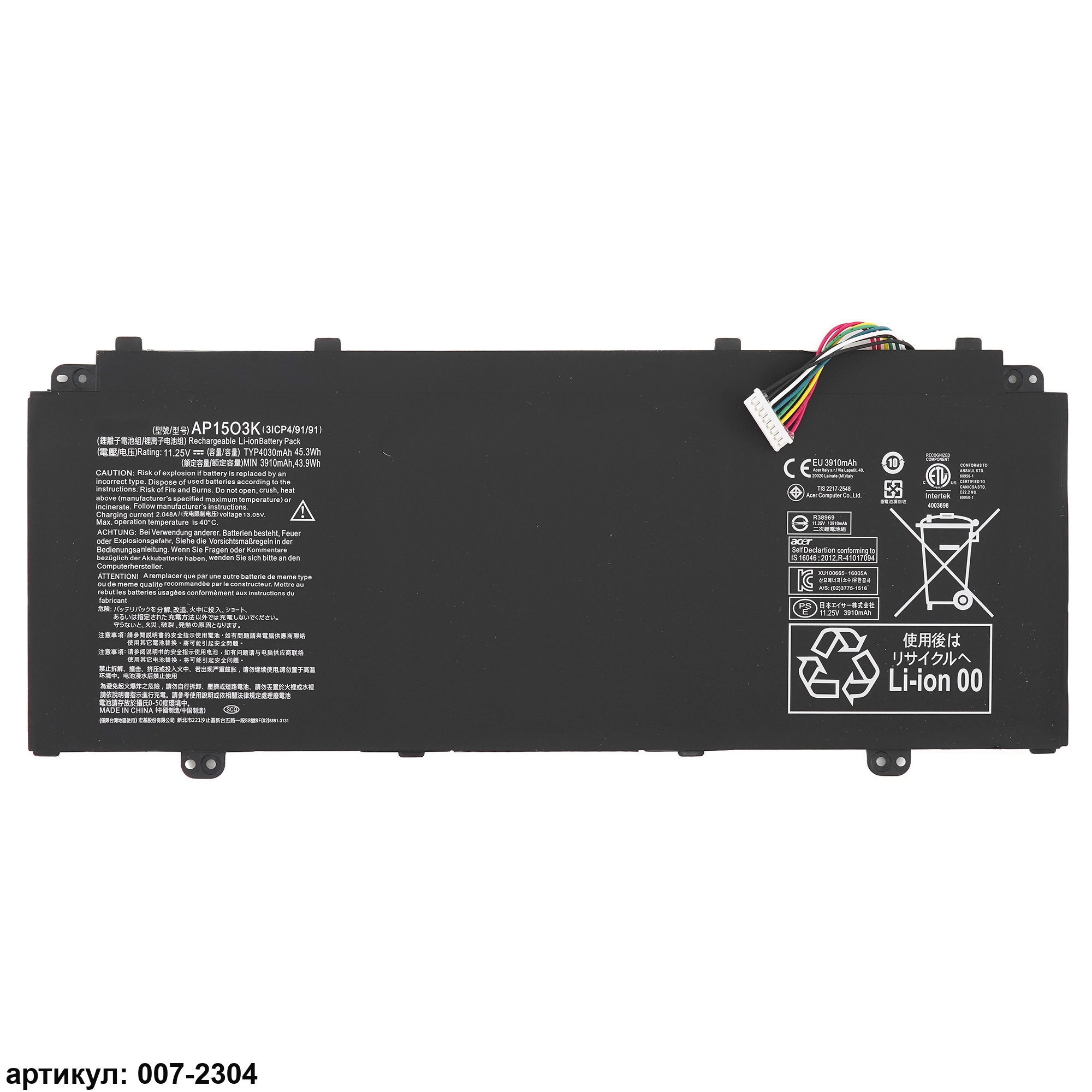 Подходит к сериям ноутбуков: Acer Aspire S5-371, S5-371T, S5-371-53NX, S5-371-52JR, Chromebook R13 CB5-312T, CB5-312T-K0YK, Swift SF514-51Совместимые P/N: AP1503K, AP15O3K, AP15O5L