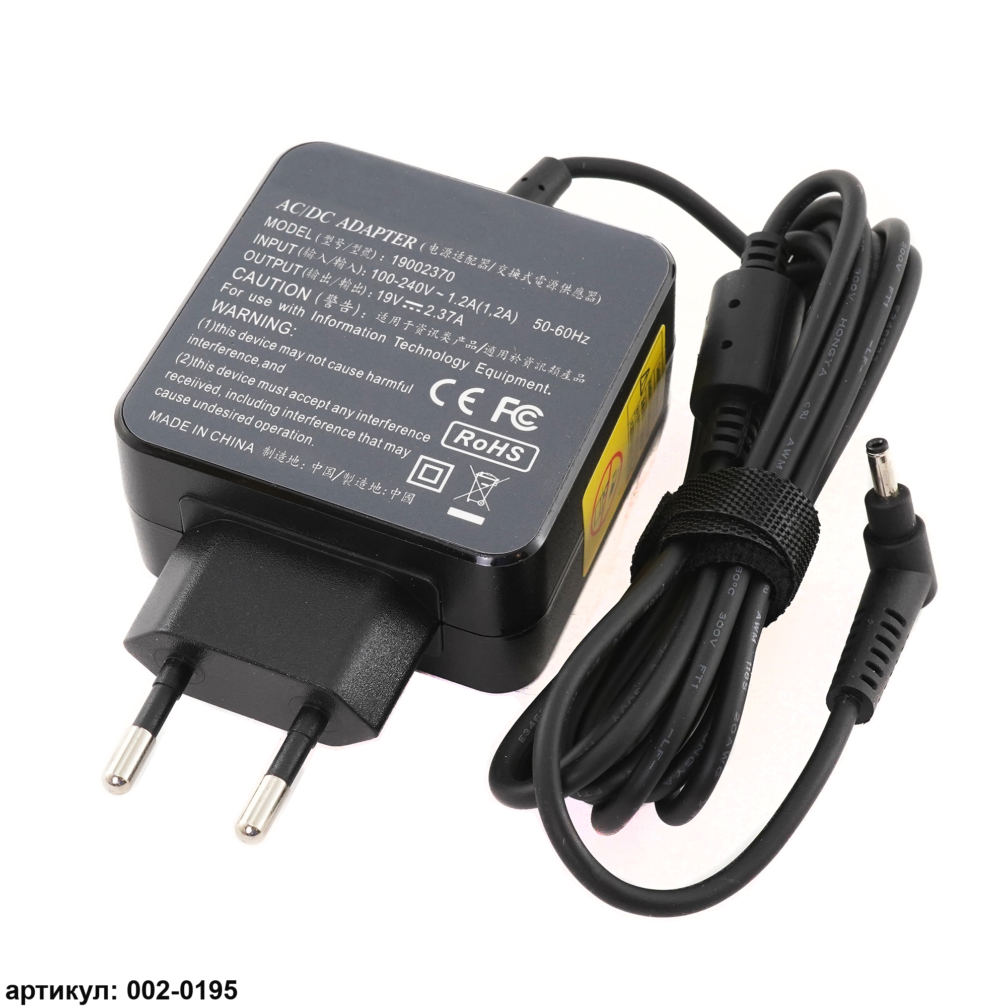 Asus 19V 2.37A (45W) 3x1.1мм (квадратная) вилка в центре