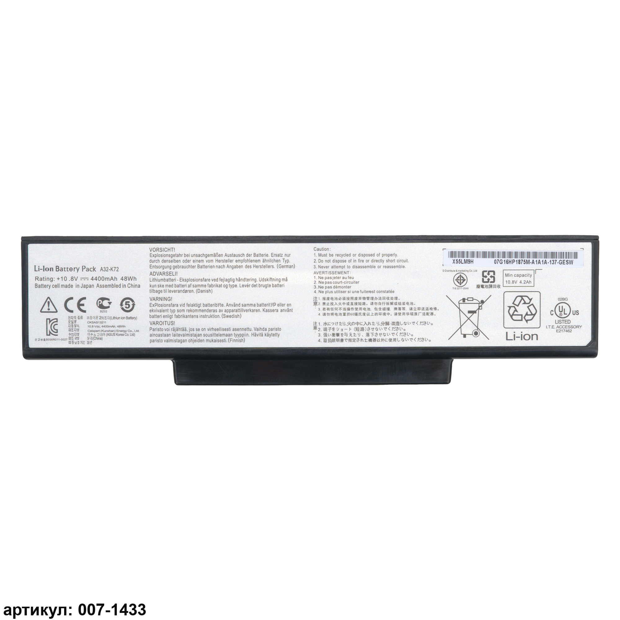 Совместимые P/N: A32-K72, A33-K72, A32-N71, A32-N73, 70-NX01B1000Z, 70-NXH1B1000Z, 70-NZY1B1000Z, 70-NZYB1000Z, 90-XB2KN0BT00000Y