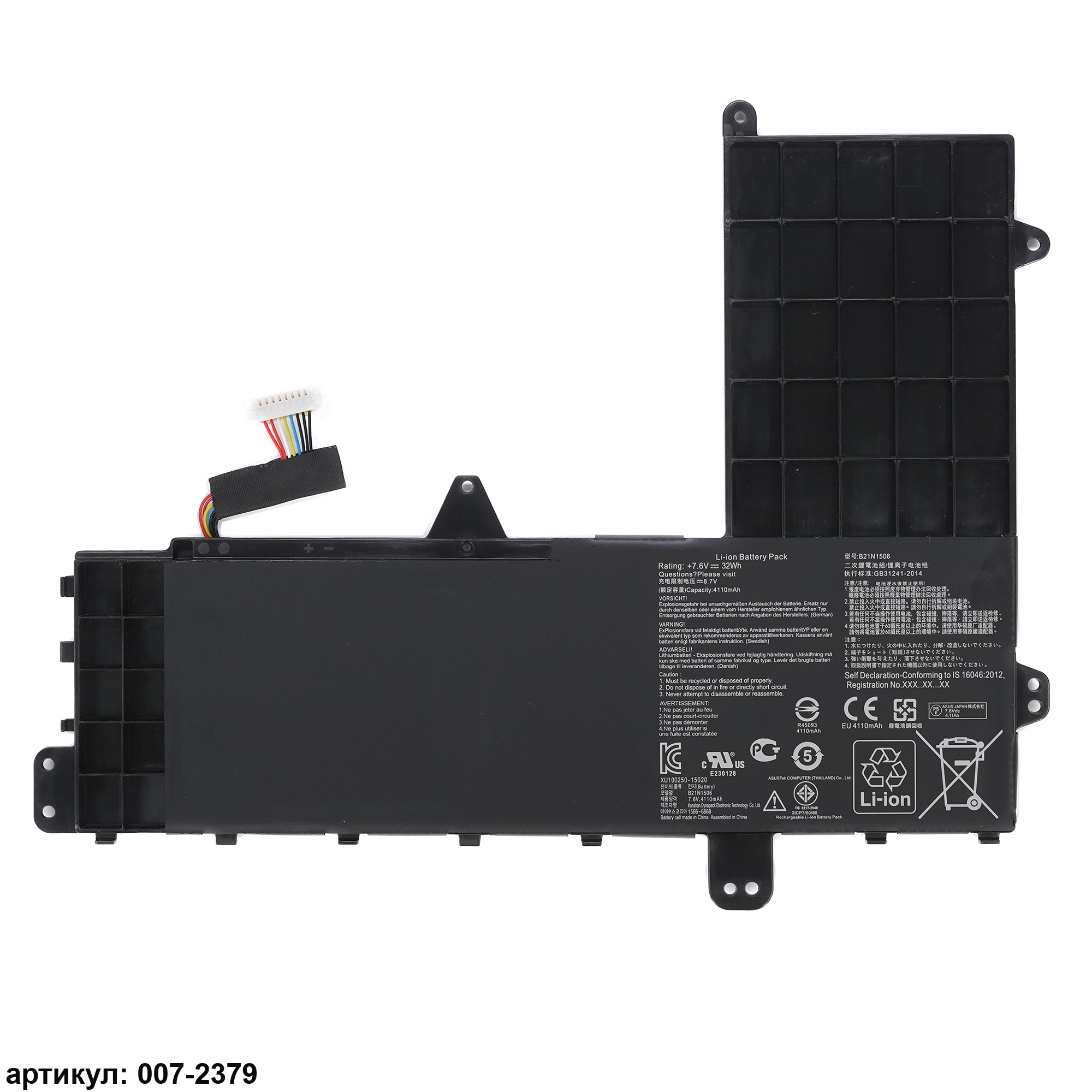 Подходит к сериям ноутбуков: Asus E502M, E502MAСовместимые P/N: B21N1506, 0B200-01430600