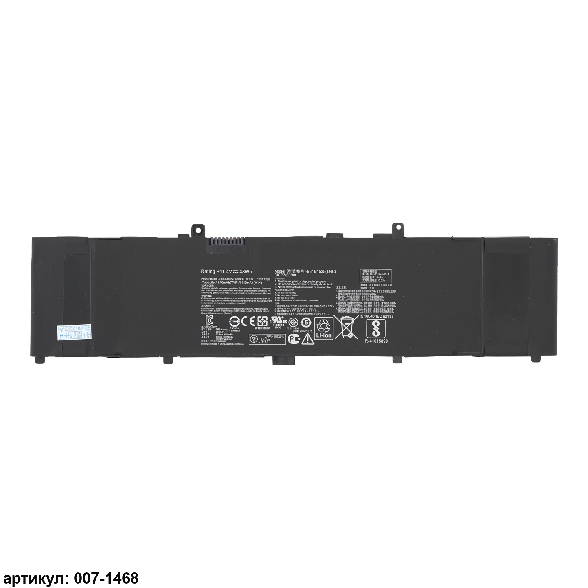 Подходит к сериям ноутбуков: Asus UX310, UX310UA, UX310UQ, UX410UA, UX410UQСовместимые P/N: B31N1535