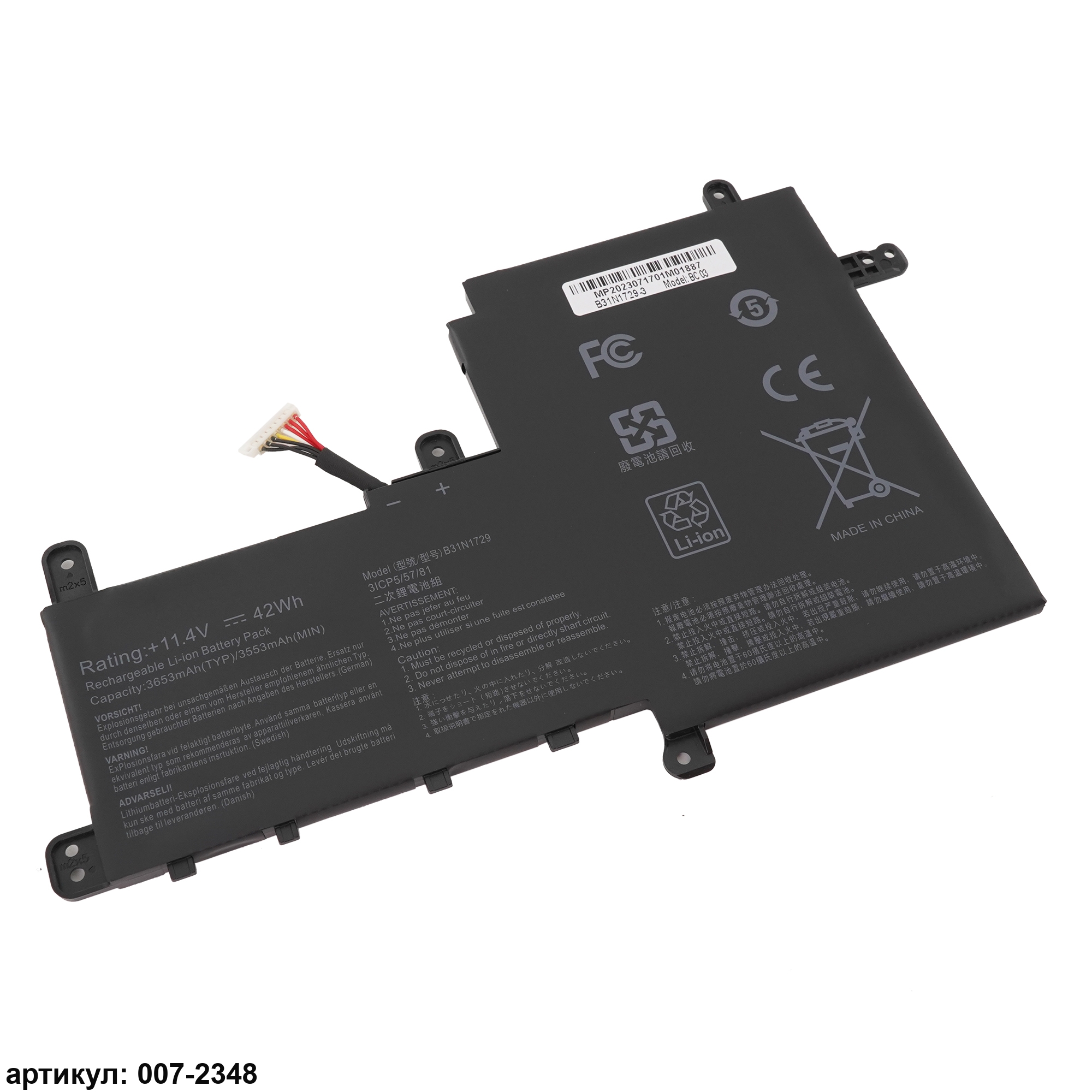 Совместимые P/N: B31N1729, 0B200-02920000, 3ICP5/57/81