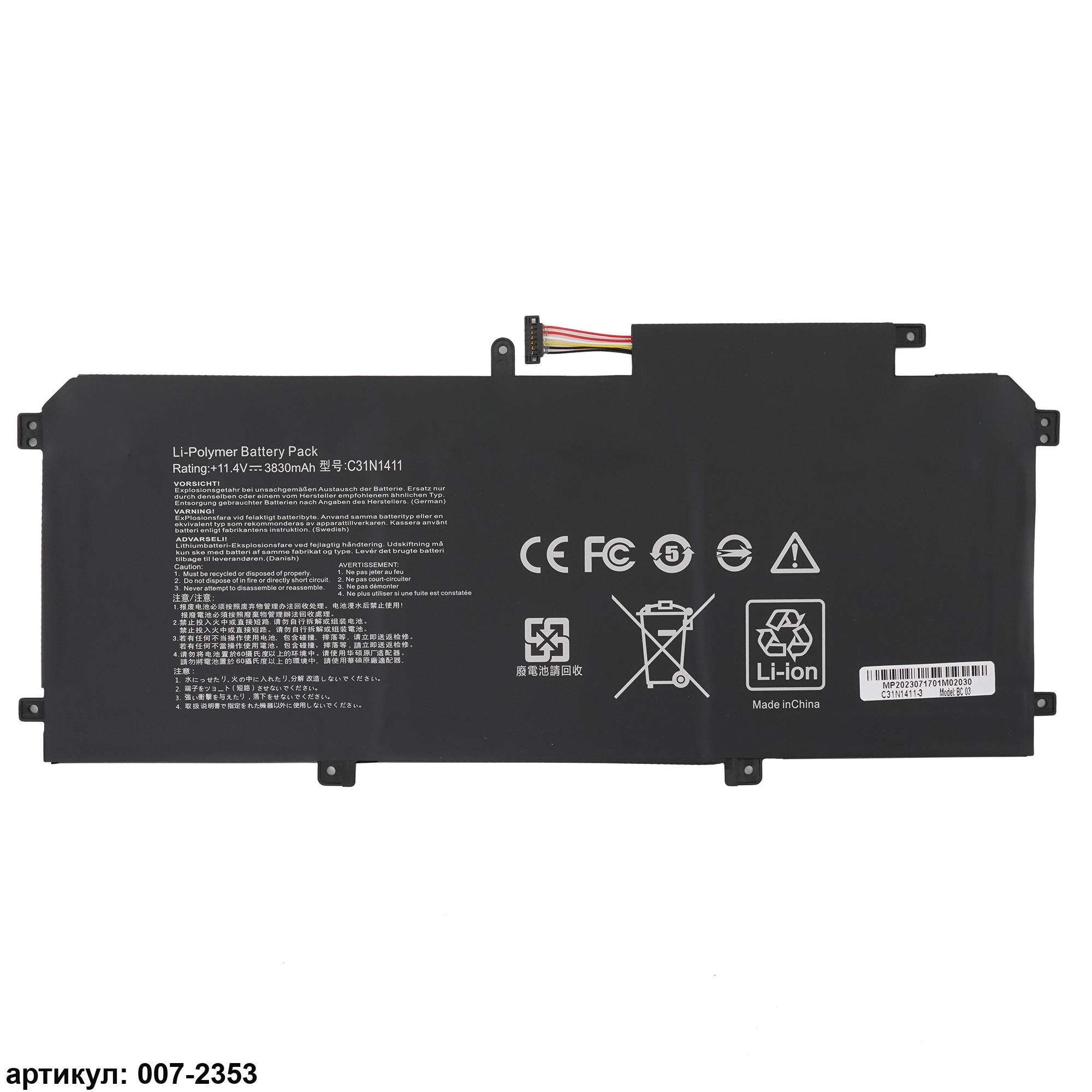 Подходит к сериям ноутбуков: Asus Zenbook UX305, U305FA, U305CAСовместимые P/N: C31N1411