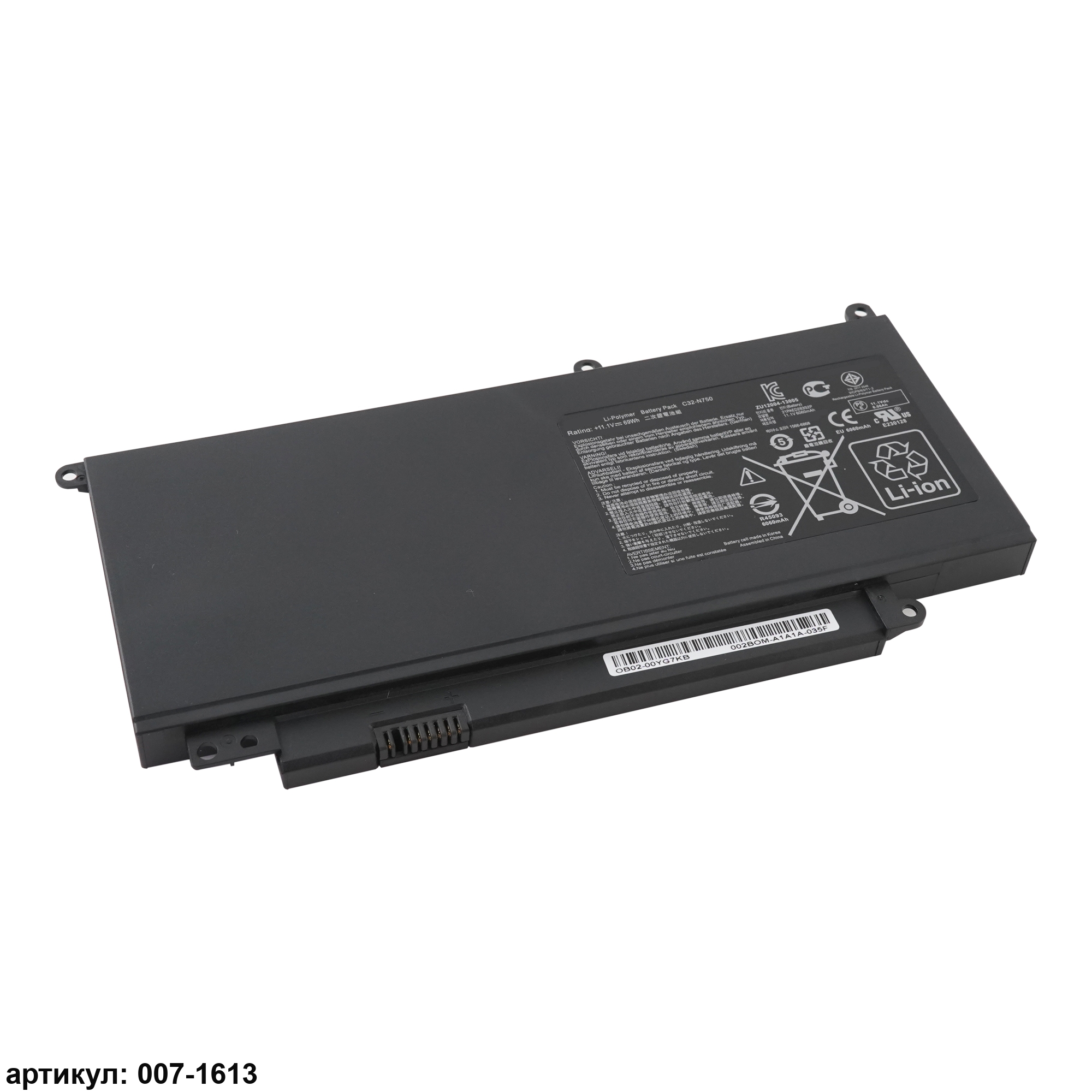 Подходит к сериям ноутбуков: Asus N750JK, N750JV, R750JK, R750JVСовместимые P/N: C32-N750, 0B200-00400000