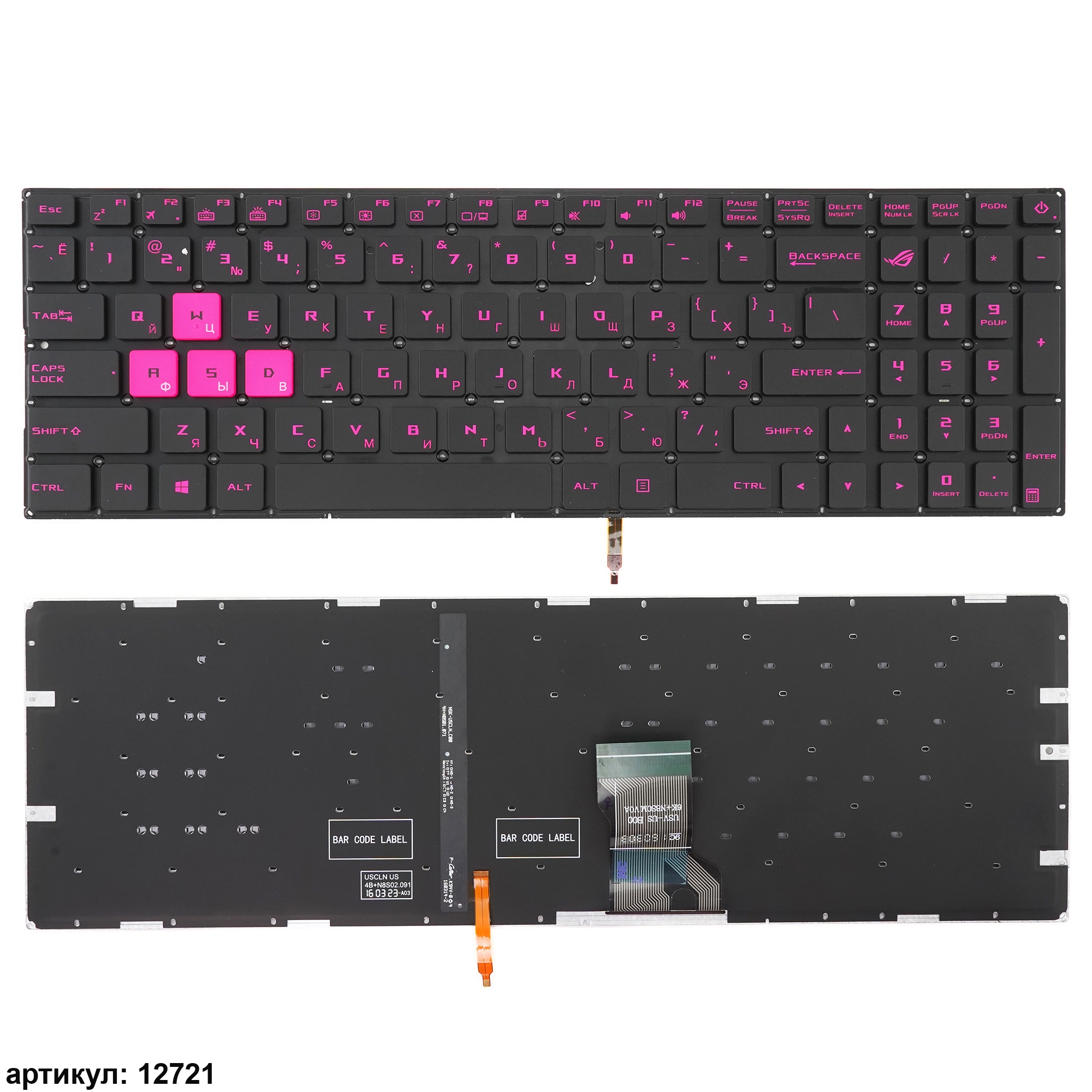Клавиатура для ноутбука Asus GL502 черная с подсветкой, розовый шрифт