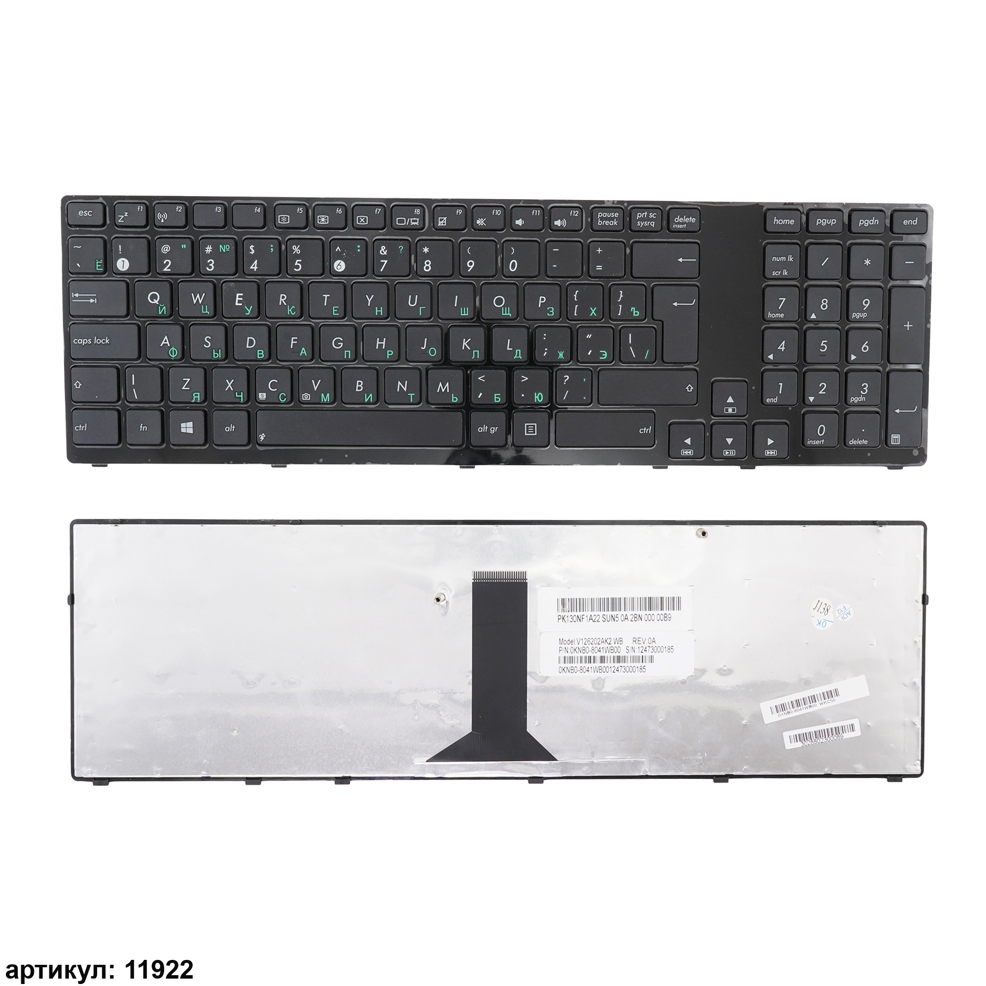 Клавиатура подходит к ноутбукам: Asus K93, K93SM, K93SV, K95, K95V, K95VB, K95VJ, K95VM, X93SM, X93SVСовместимые P/n: V126202AK2, V126202AS2, 0KNB0-8041RU00, V126202AS1, PK130NF1A05