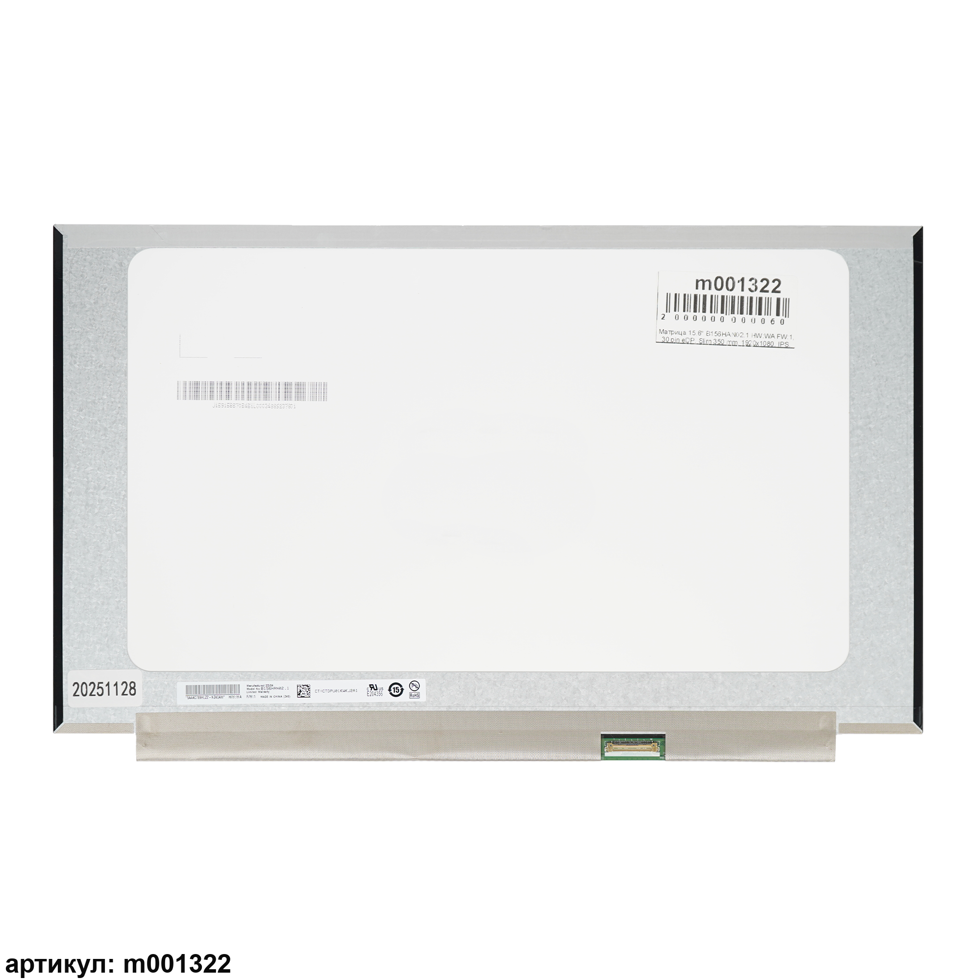 Совместимые модели: B156HAN02.2, B156HAN02.7, B156HAN02.3, B156HAN02.8, B156HAN02.1, LM156LFCL03, LM156LFCL13, LM156LFBL02, LM156LF4L01, LM156LFCL11, LM156LFCL01, LM156LFCL10, LM156LFAL01, LM156LF5L03, LM156LFCL05, LM156LFBL03, LM156LFCL07, LM156LFCL12, LM156LFAL02, LM156LF5L06, LM156LF5L04, LP156WF5(SP)(A2), LP156WF9(SP)(L2), LP156WF9(SP)(L9), LP156WF9(SP)(L1), LP156WF9(SP)(K1), LP156WF9(SP)(M3), LP156WF9(SP)(M9), LP156WF9(SP)(M1), LP156WF9(SP)(C1), LP156WFC(SP)(C1), LP156WFF(SP)(B1), LP156WFC(SP)(D2), LP156WFC(SP)(D3), LP156WFC(SP)(D5), LP156WFC(SP)(D7), LP156WFC(SP)(D1), N156HCA-EBB, N156HCA-EBA, N156HCA-EAB, NV156FHM-N48, NV156FHM-N35, NV156FHM-N45, NV156FHM-N4S, NV156FHM-N3D, LP156WFC(SP)(F6), NE156FHM-N41, NE156FHM-NS0, NV156FHM-N4X, TV156FHM-NH1