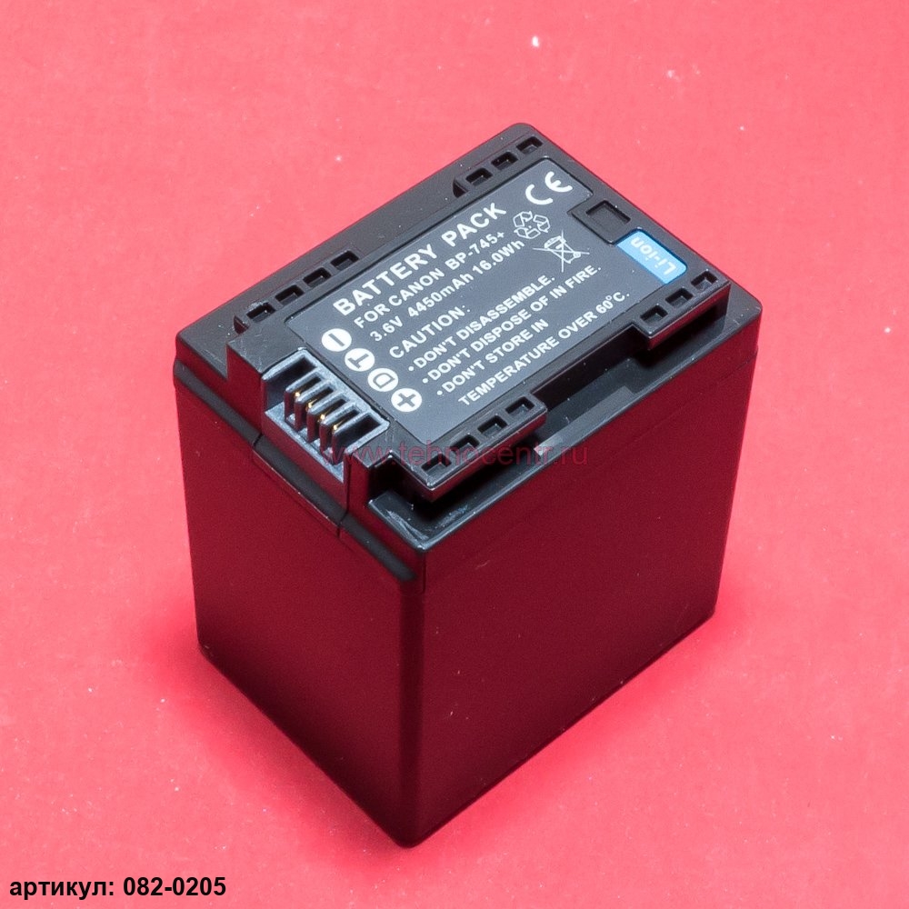 Подходит к видеокамерам: Canon LEGRIA HF M50, M52, M56, M500, M506, R30, R32, R36, R37, R38, R300, R306p/n: BP-745, BP-709, BP-718, BP-727, CS-BP745MC