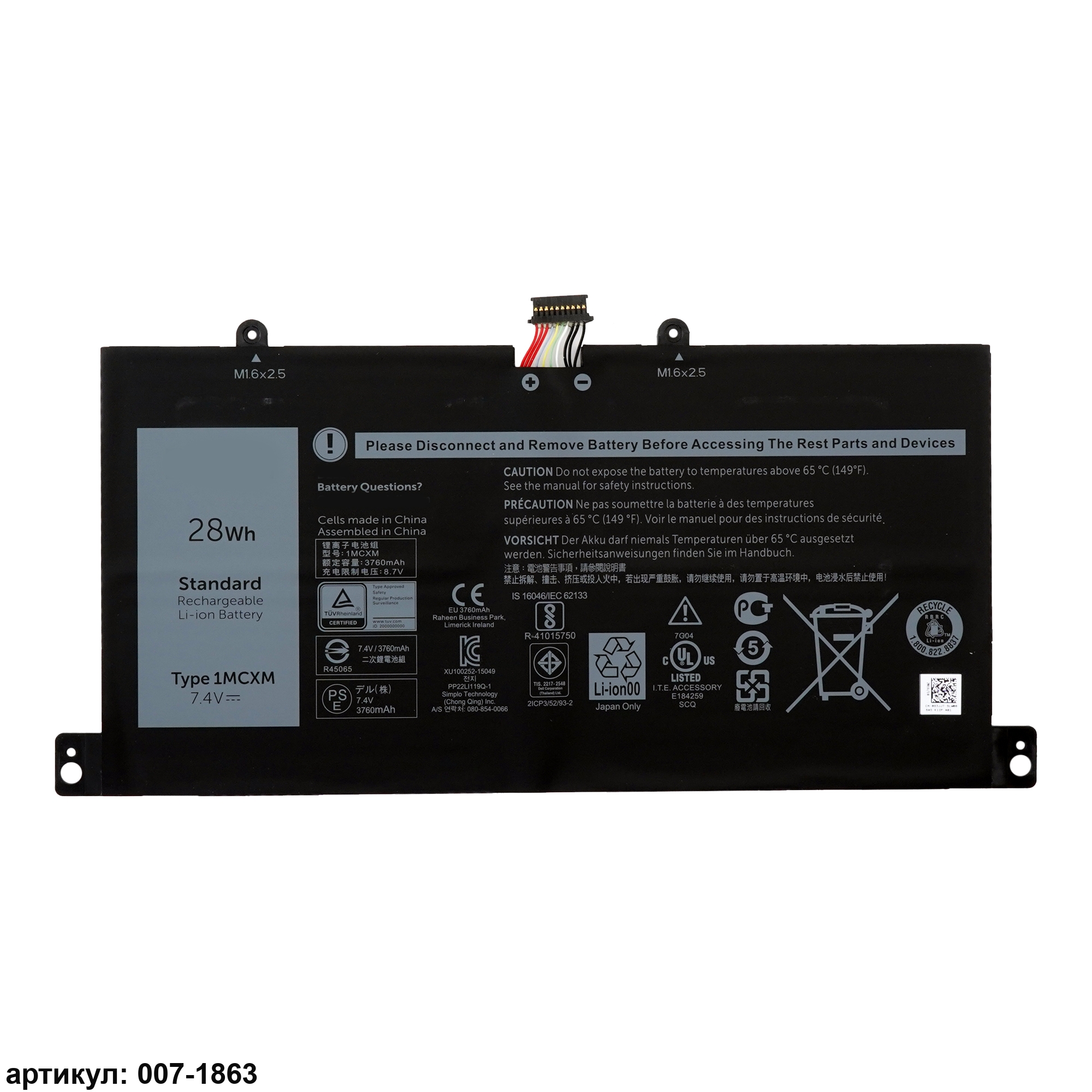 Подходит к сериям ноутбуков: Dell Latitude 11 5175, 5179, E5175, E5179Совместимые P/N: 1MCXM, G3JJT, PKG3N, 0G3JJT