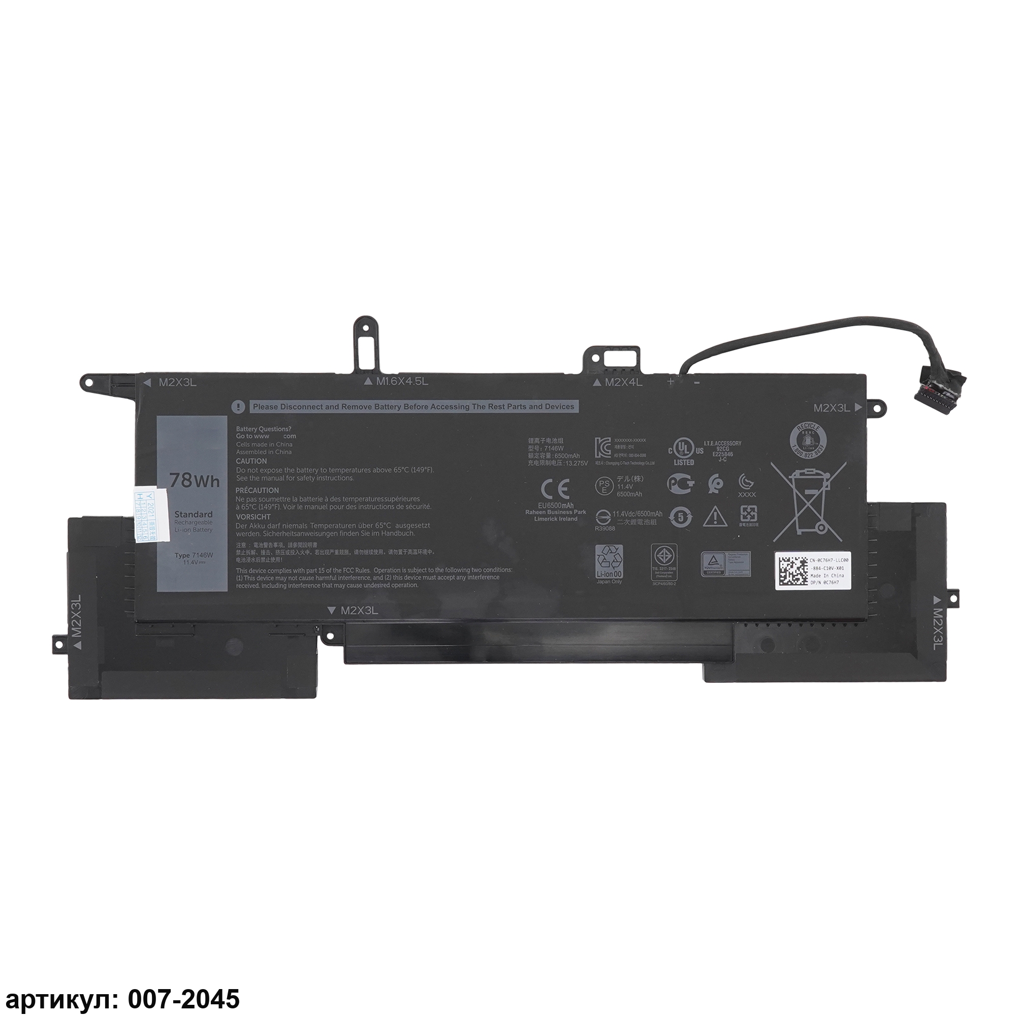 Подходит к сериям ноутбуков: Dell Latitude 7400, E7400 2 en 1, Latitude 9410Совместимые P/N: 7146W, 02K0CK, P110G001, 0C76H7, P110G, NF2MW, 0C76H7, C76H7, 0G8F6M