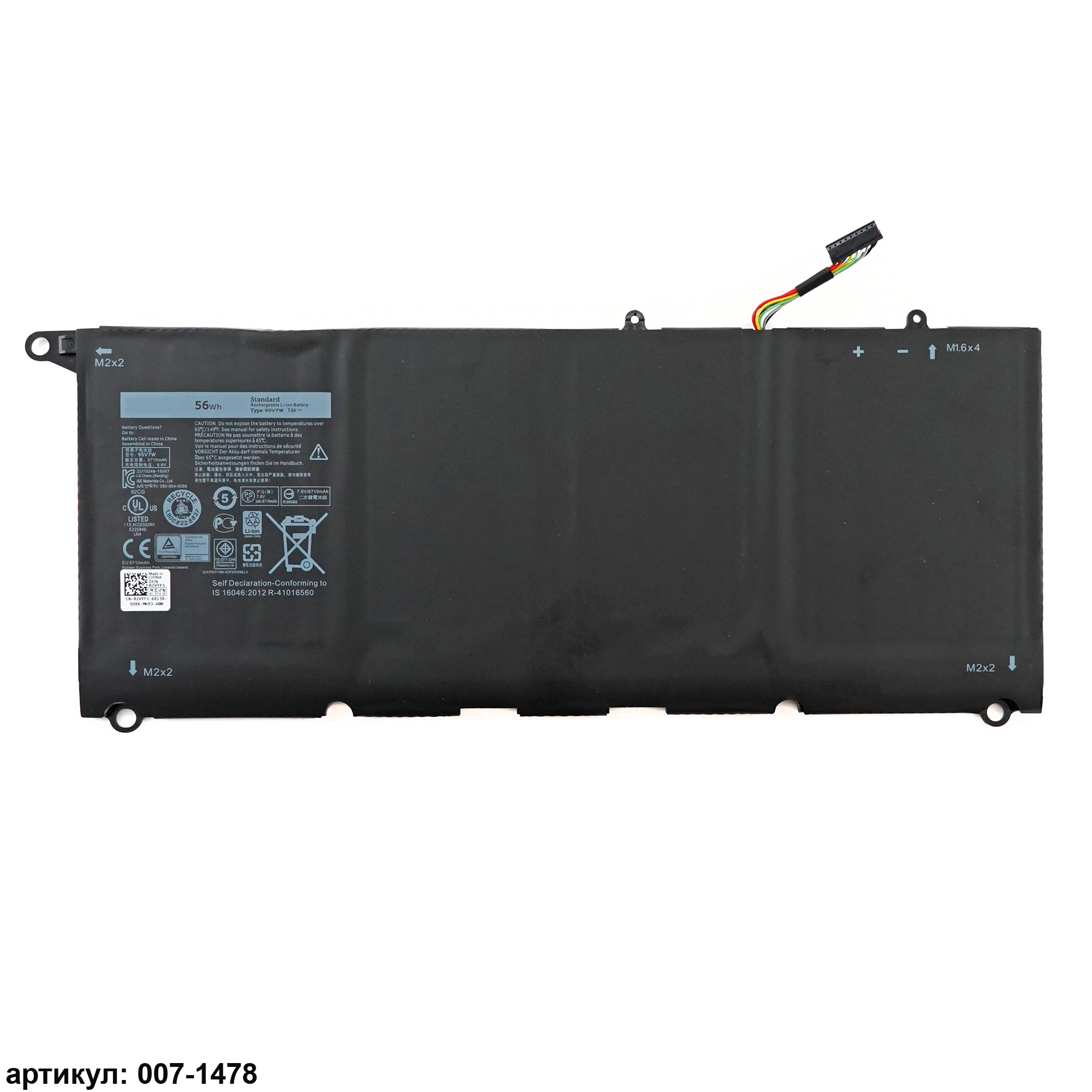 Подходит к сериям ноутбуков: Dell XPS 13-9343, 13-9350Совместимые P/N: 90V7W, 0DRRP, 0N7T6, 5K9CP, CN-0N7T6, DIN02, JD25G, JHXPY, RWT1R