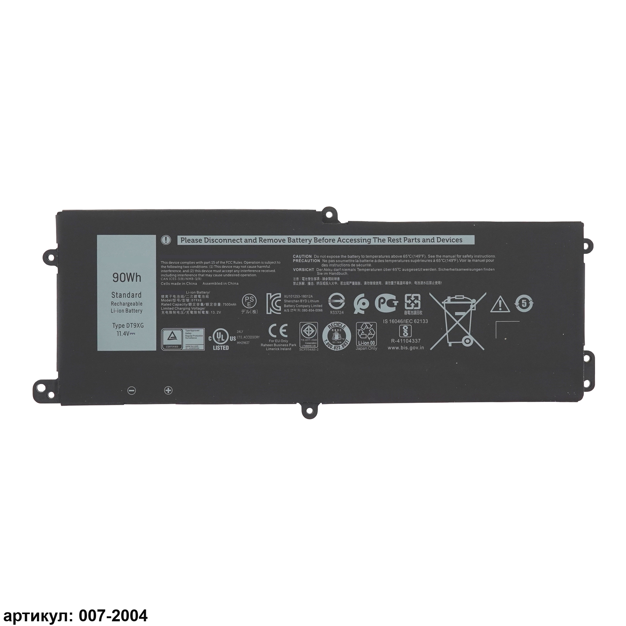 Совместимые P/N: DT9XG, 3ICP7/54/64-2, 0KJYFY, CN-0KJYFY, 7PWKV, 07PWXV, P38E, P38E001