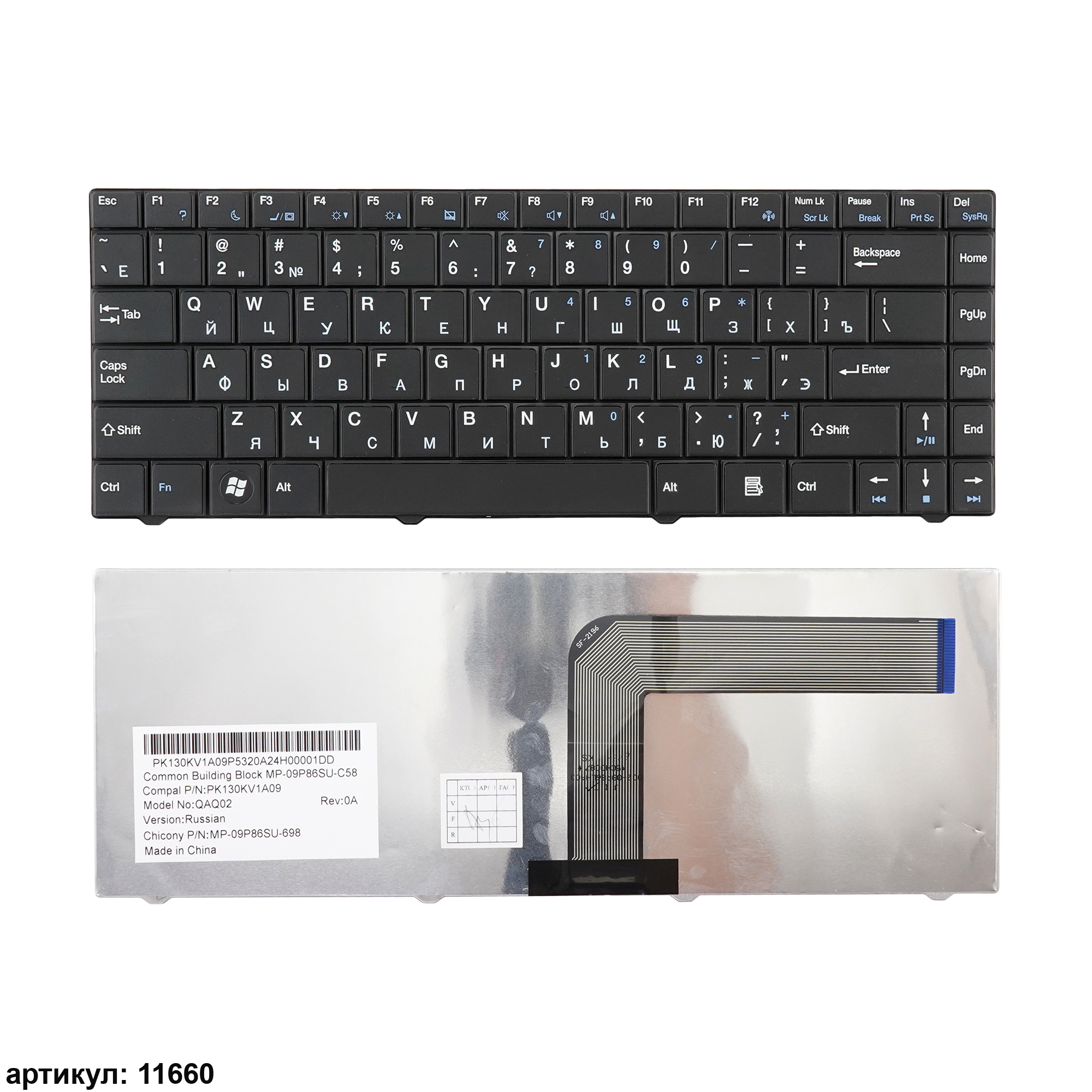 Клавиатура подходит к ноутбукам: DNS 0135730, 0126555, 0133230, 0133226, 0123940, DNS 127604, Advent 5313, 5421, 5431, 5511, Hasee Q1000, F4000, F233, Q550Совместимые P/n: QAQ02, MP-09P83US-698, MP-09P83US-C58, PK130KV1A00, V092328EK1, 71GU41244-00, MP-07G36SU-3601, MP-09P86SU-698, MP-09P86SU-C58, PK130KV1A09, MP-09P88PA-F515, MP-07G36SU-36013