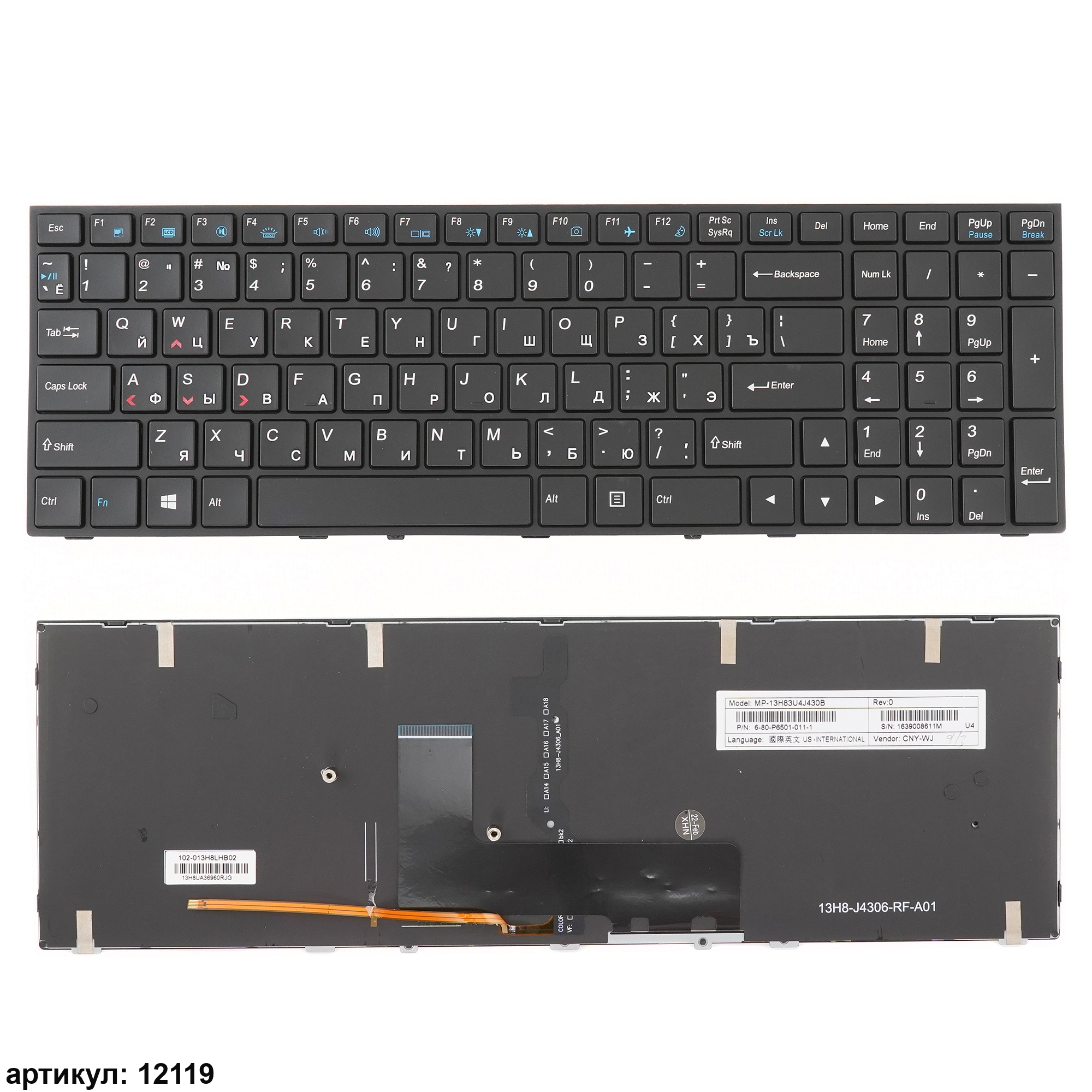 Клавиатура подходит к ноутбукам: DNS Clevo P650SG, P650SEСовместимые P/n: MP-13H83USJ430B, MP-13H83USJ430B4