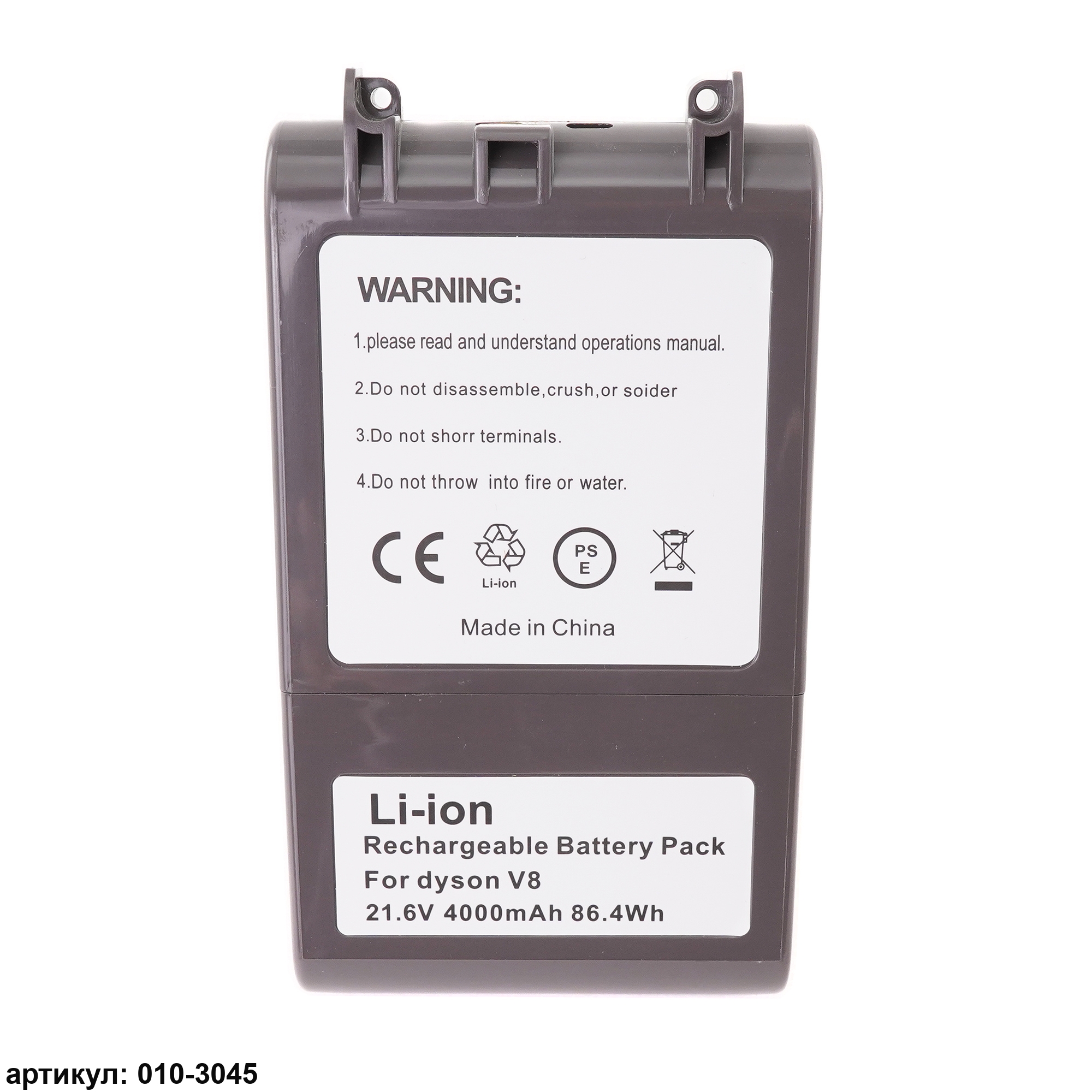 Подходит к пылесосам: Dyson V8, V8 Absolute, V8 Animal, Exclusive, V8 Fluffy, V8 Range (SV10, SV10E)Совместимые p/n: 225403, 215681, 215866-01/02, 215967-01/02, PM8-US-HFB1497A, PU2-JP-HFA4456A, CS-DYC800VX, 967834-02Обращаем Ваше внимание: Определить, подходит ли аккумулятор к Вашему устройству, можно по модели или по парт-номеру (p/n), указанному на аккумуляторе.