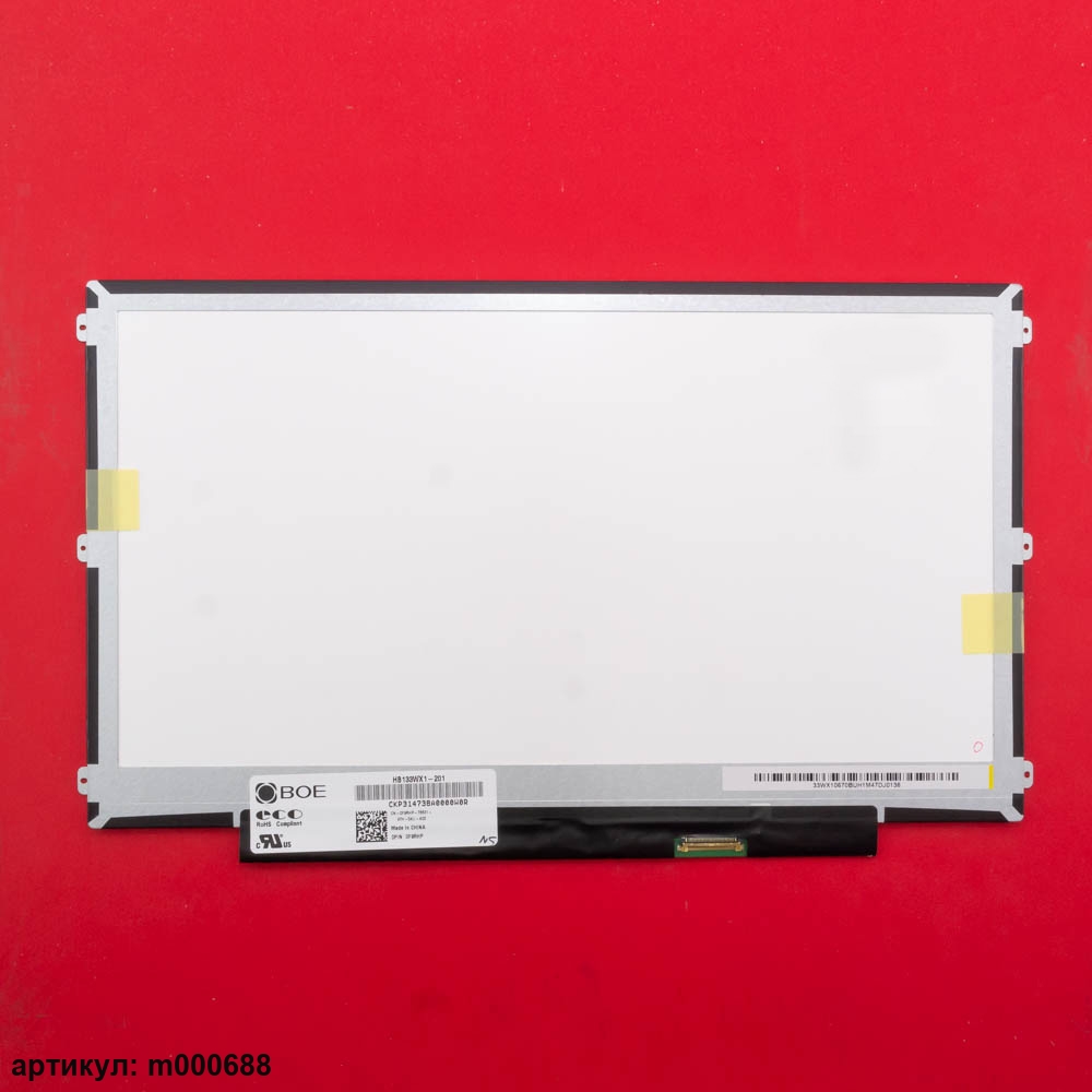 Матрица тонкая (Slim), крепления (ушки) расположены сверху и снизу.Разъем расположен снизу справа на внешней плате.Тип матрицы: TNPN: N133BGA-EAB Rev.C1, NT133WHM-N46, M133NWN1 R5, B133XTN01.6, M133NWN1 R4, HB133WX1-201, N133BGE-EAB, CLAA133WB03, HB133WX1-402, LTN133AT29-401, M133NWN1 R3, B133XTN01.3 HW:0A