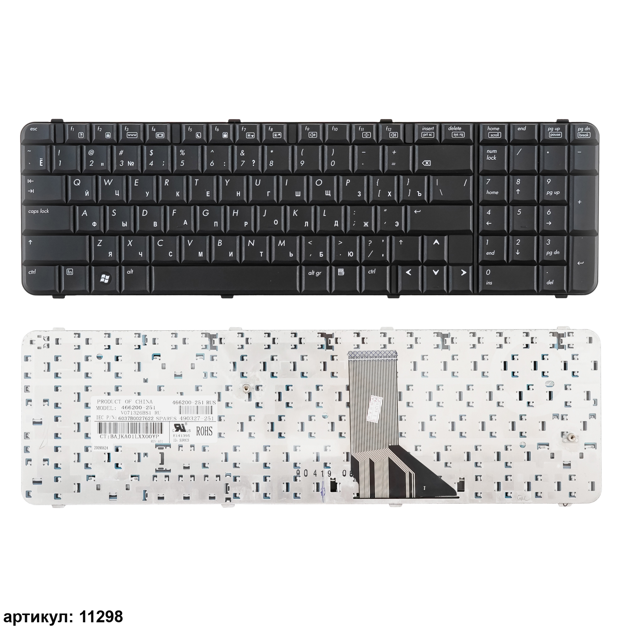 Клавиатура подходит к ноутбукам: HP Compaq 6830, 6830SСовместимые P/n: 466200-251, 490327-251, 6037B0027622, V071326BS1, 9J.N0Y82.60E, AE0P6I00310, AEOP6L00010, MP-08A96L0-920