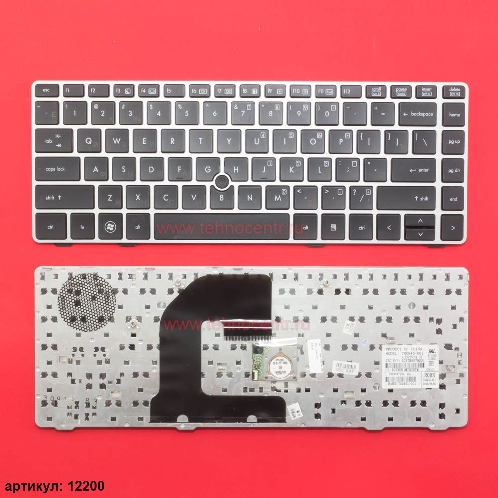 Клавиатура для ноутбука HP 8460P, 6460B, 6465B черная с серебристой рамкой со стиком