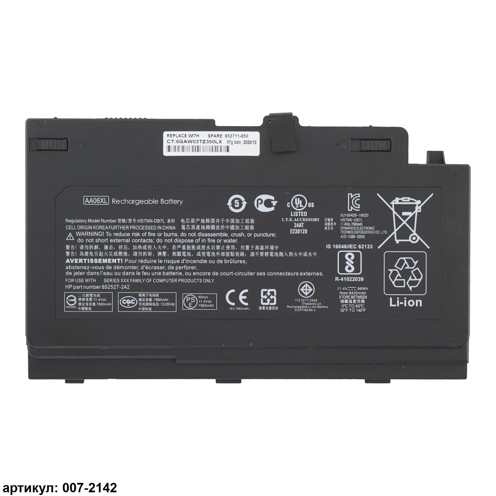 Совместимые P/N: 852527-221, 852527-222, 852527-241, 852711-850, AA06XL, HSTNN-C86C, HSTNN-DB7L