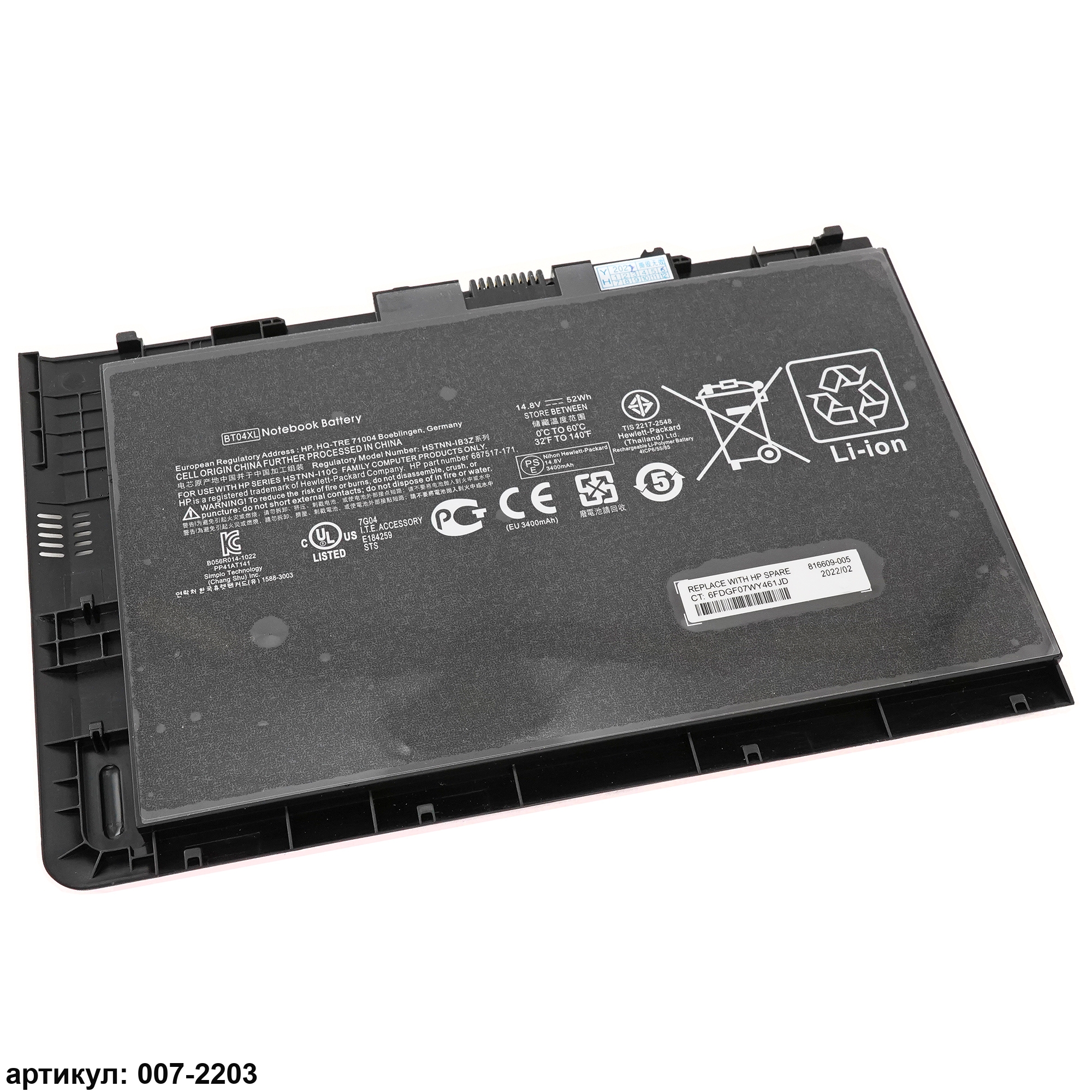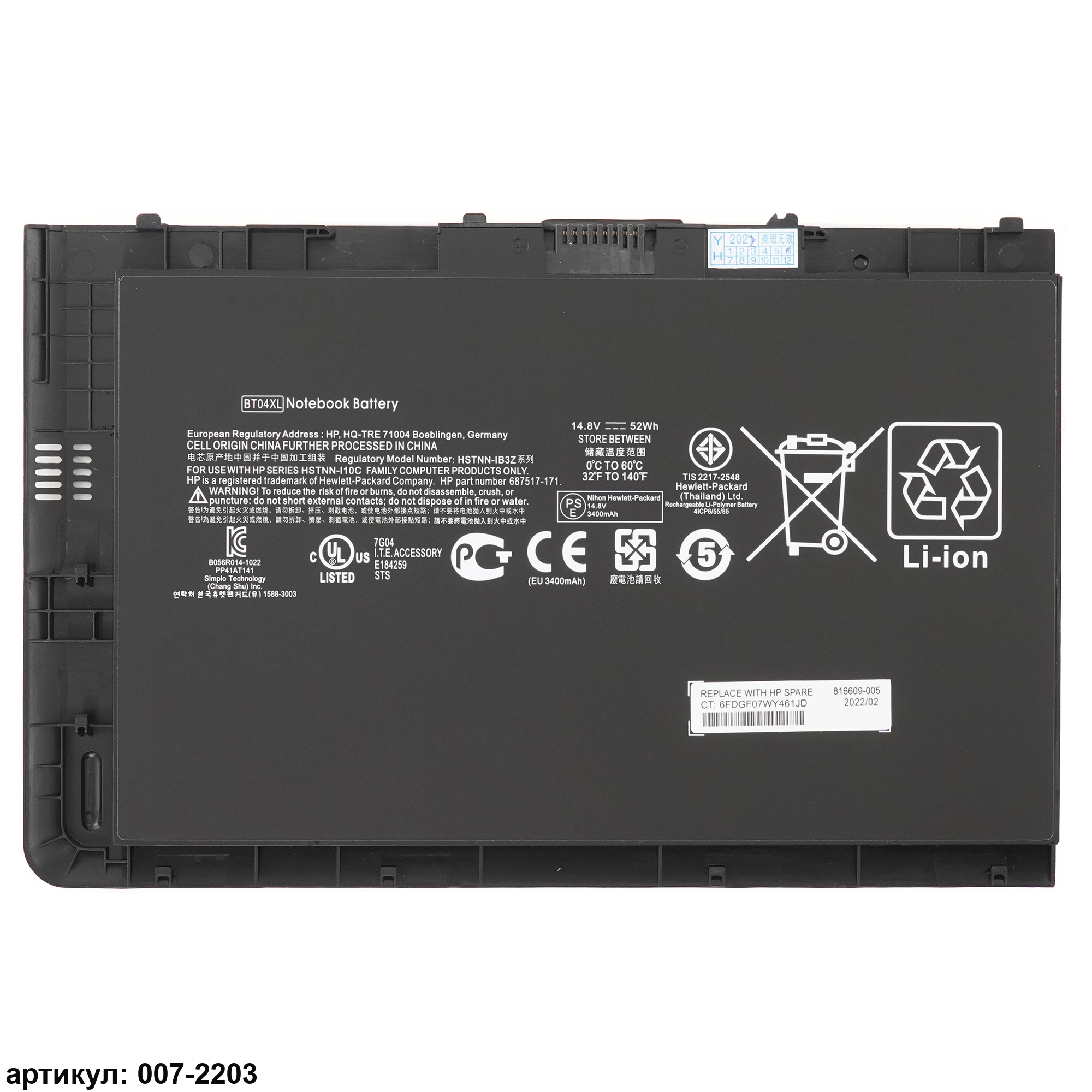 Совместимые P/N: BT04XL, BA06, BA06XL, BT04, BT04052XL-PL, H4Q47AA, H4Q48AA, HSTNN-I10C, HSTNN-IB3Z, STNN-DB3Z, 687517-171, 687517-241, 687945-001, 696621-001