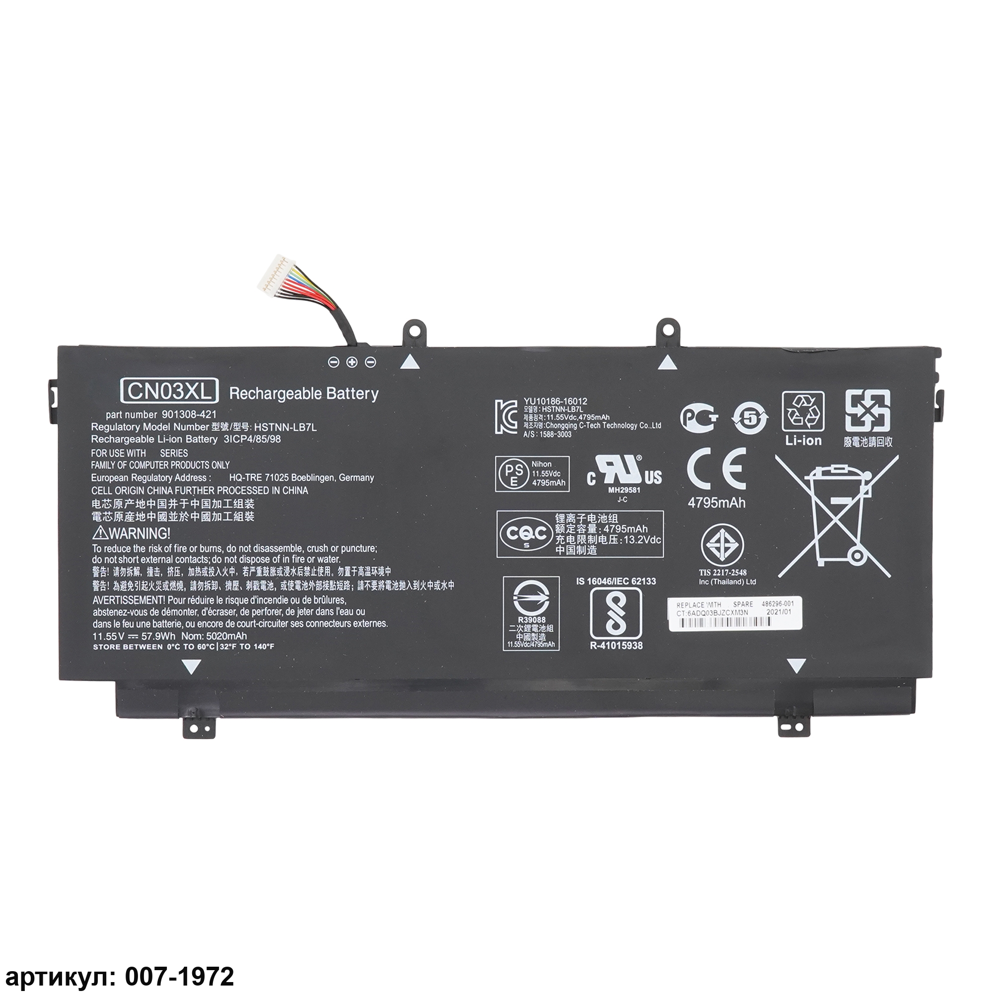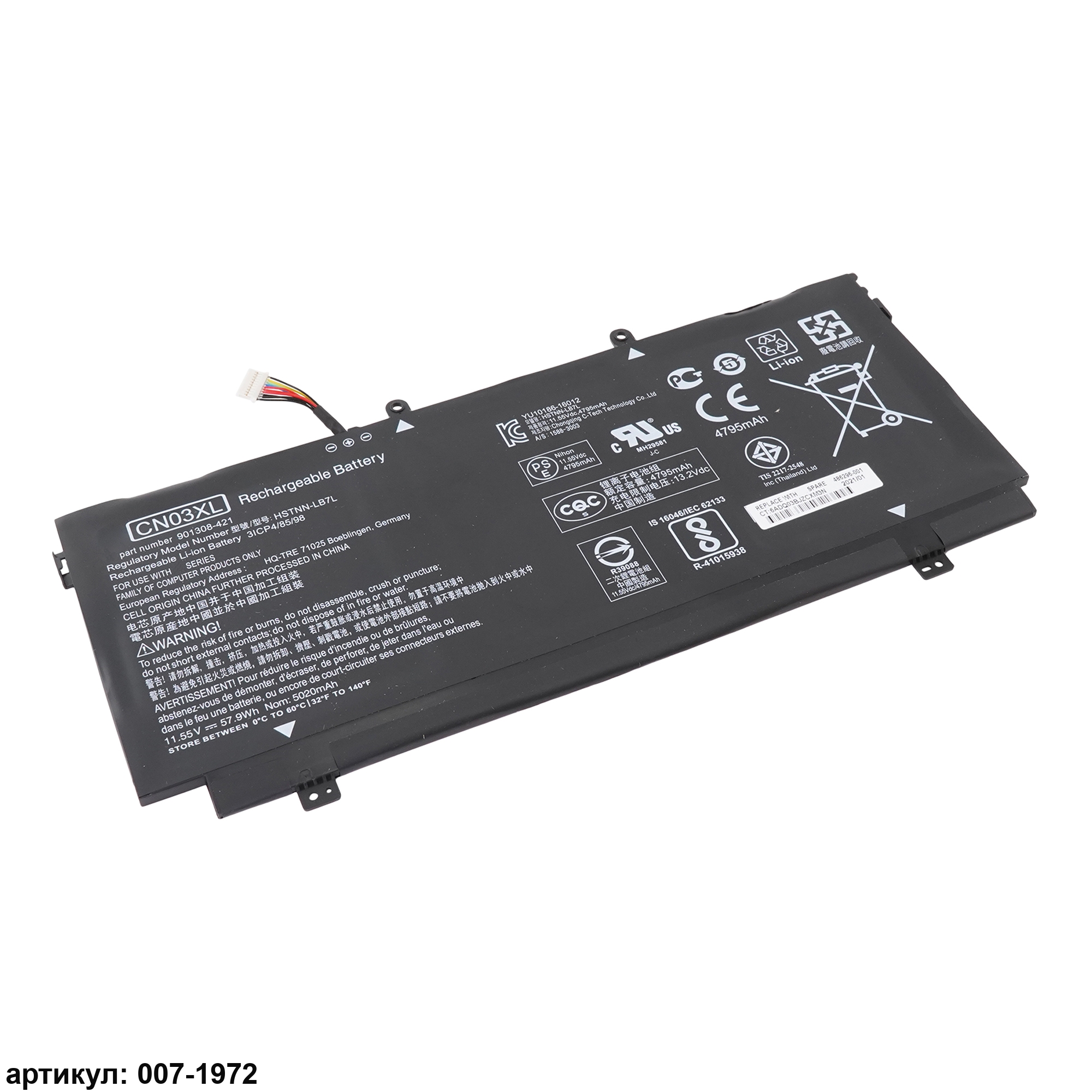 Совместимые P/N: CN03XL, CN03057XL, HSTNN-LB7L, 901345-855, HSTNNLB7L, SH03XL, 901308-421, TPN-Q178, 859356-855, 859026-421, 3ICP4/85/98