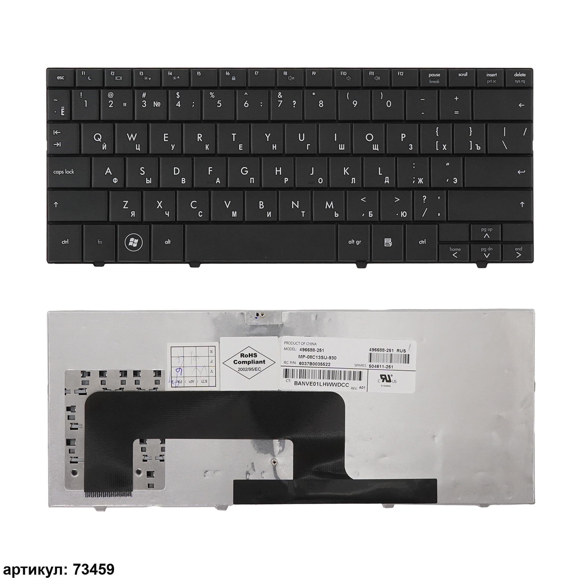 Клавиатура подходит к ноутбукам: HP Compaq Mini 700, 1000, 1100Совместимые P/n: 496688-001, 504611-001, 6037B0035501, MP08C13US-930, 496688-251, 504611-251, MP-08C13SU-930, 508800-251, MP-08C13SU-6930, MP-08C13SU6930, 508800-001, MP-08C13US-6930, MP-08C13US6930