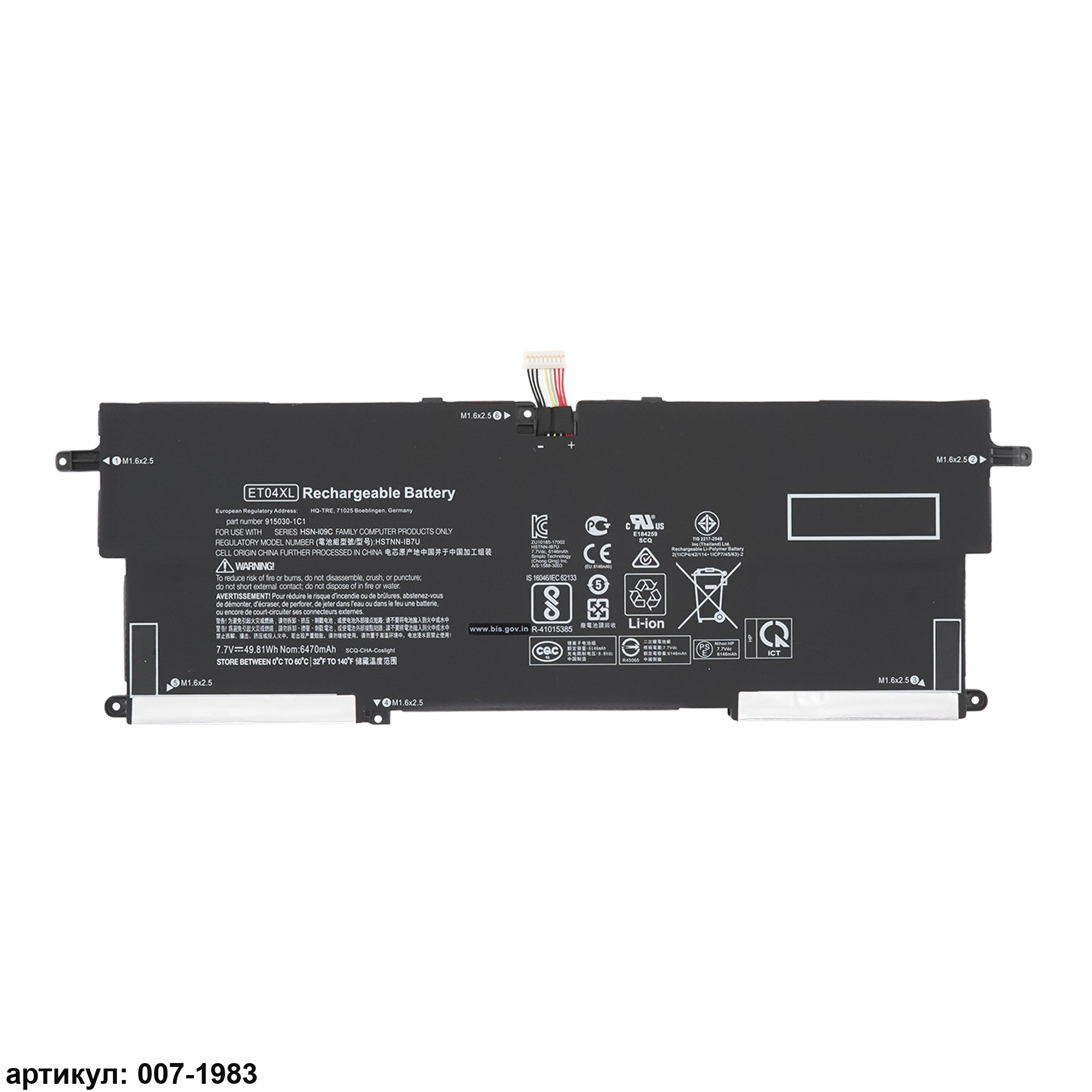 Совместимые P/N: ET04XL, ET04049XL, 915030-1C1, 915191-855, HSN-I09C, HSTNN-IB7U