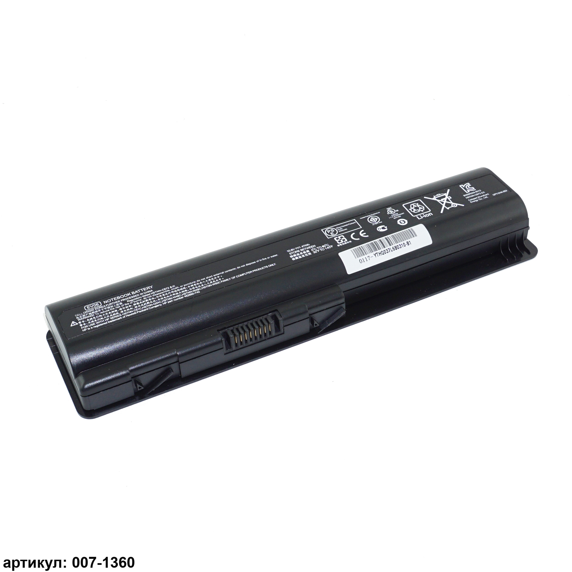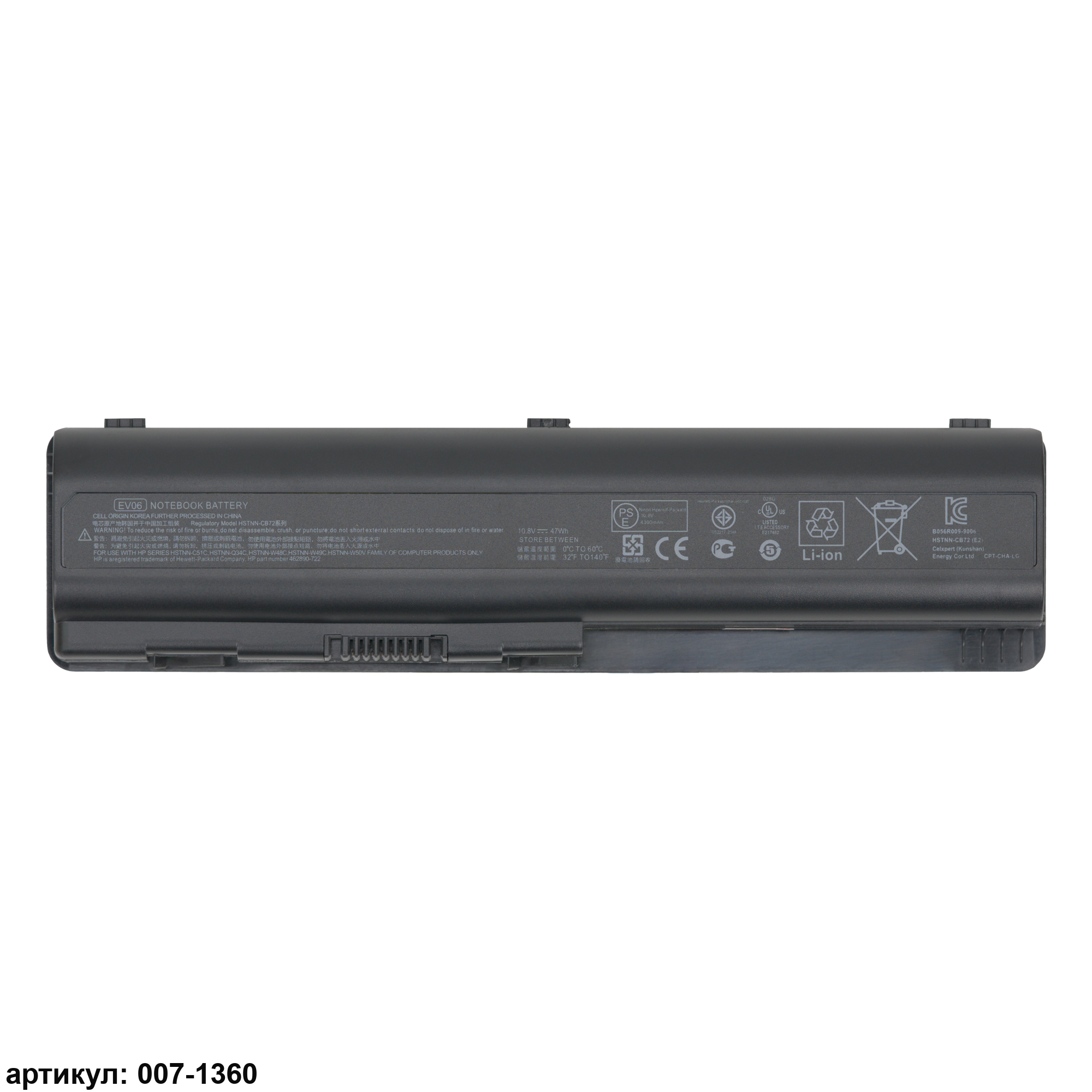 Совместимые P/N: KS524AA, KS526AA, KS527AA, EV06055, NH493AA, HSTNN-CB72, HSTNN-CB73, HSTNN-DB72, HSTNN-DB73, HSTNN-IB72, HSTNN-IB73, HSTNN-IB79, HSTNN-LB72, HSTNN-LB73, HSTNN-UB72, HSTNN-UB73, HSTNN-XB72, HSTNN-XB73, HSTNN-XB79, HSTNN-Q34C, HSTNN-Q58C, HSTNN-C51C, HSTNN-W48C, HSTNN-W49C, HSTNN-W50C, 462889-121, 462889-122, 462889-142, 462889-242, 462889-262, 462889-421, 462889-422, 462889-542, 462889-722, 462889-742, 462889-762, 462890-122, 462890-142, 462890-151, 462890-162, 462890-161, 462890-242, 462890-251, 462890-252, 462890-2A2, 462890-422, 462890-541, 462890-542, 462890-722, 462890-742, 462890-751, 462890-761, 462890-762, 462890-851, 462890-1A3, 462891-142, 462891-162, 462891-422, 462891-541, 462891-542, 482186-003, 484170-001, 484170-002, 484171-001, 485041-001, 485041-003, 487296-001, 487354-001, 497694-001, 498482-001