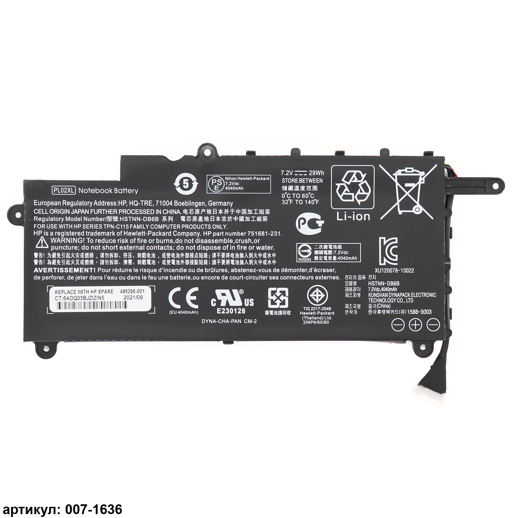 Совместимые P/N: 751681-231, 751681-421, HSTNN-DB6B, HSTNN-LB6B, PTN-C115
