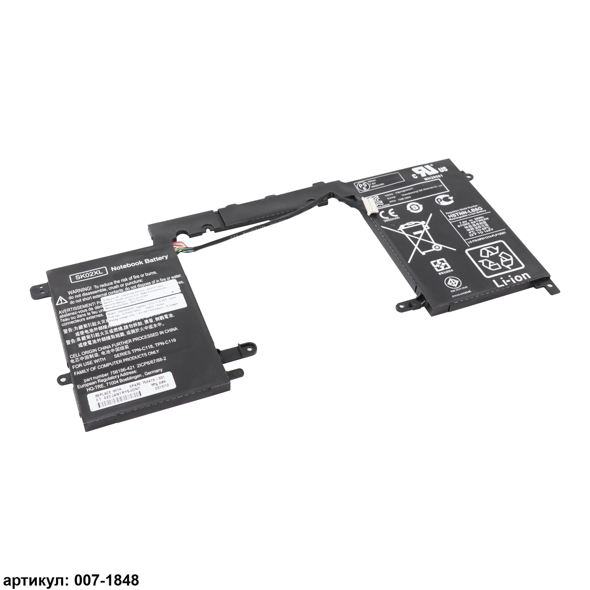 Совместимые P/N: 756186-421, HSTNN-LB6G, SK02XL, TPN-C118, TPN-C119, 756186-2C1, 756186-271, 756416-001, SK02030XL-PL, SK02030XL, HSTNN-DB6G