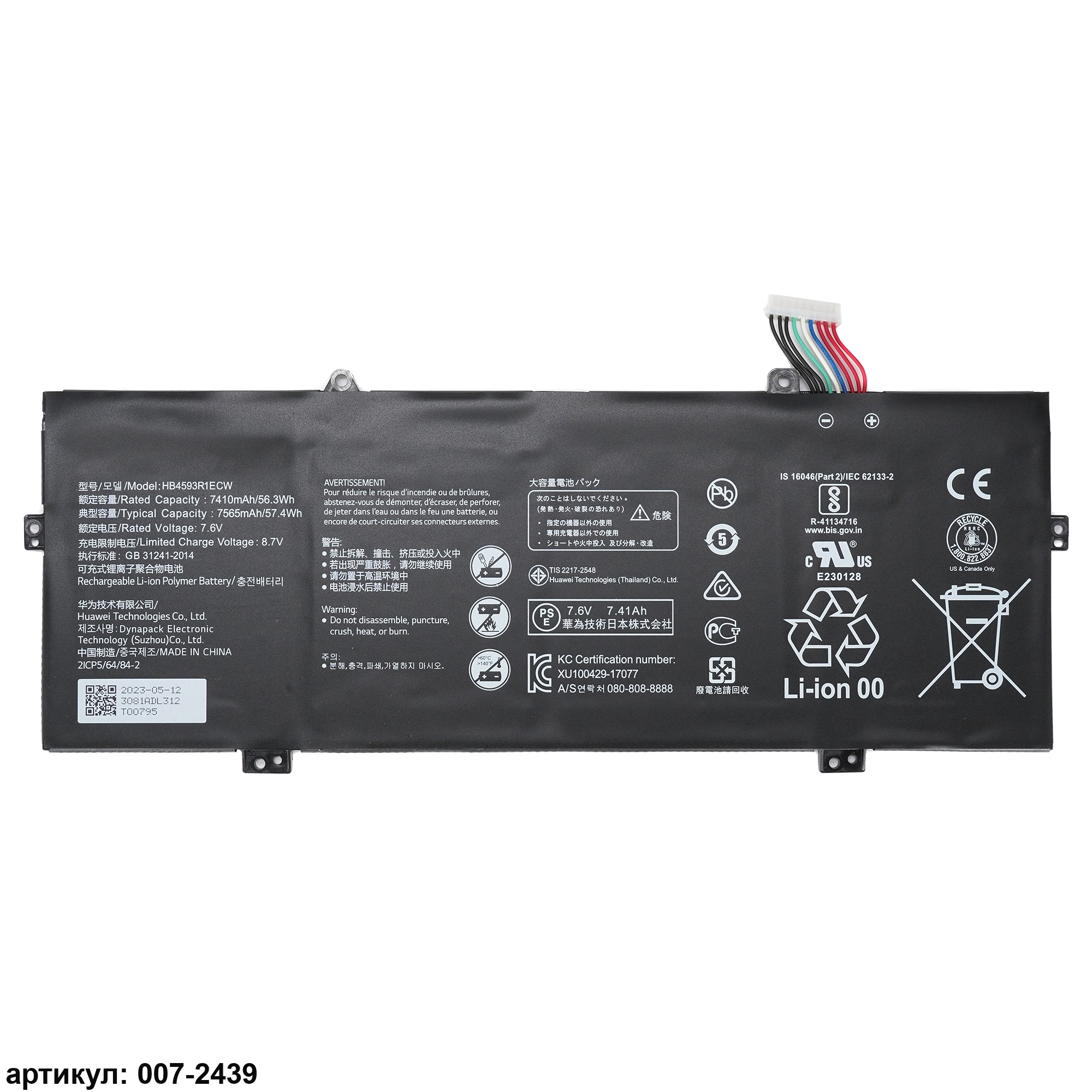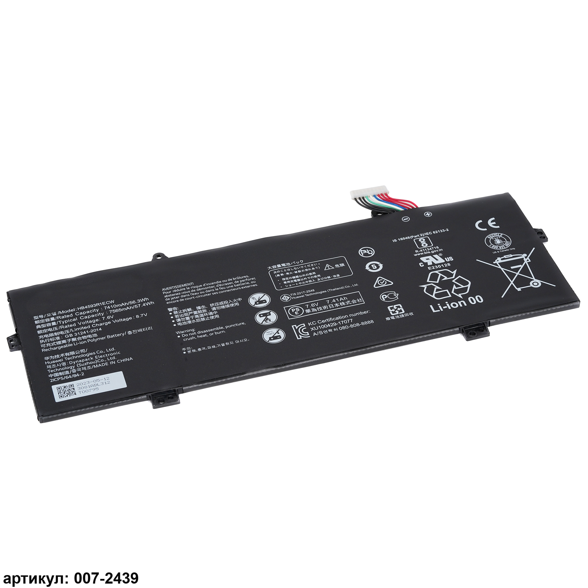Подходит к сериям ноутбуков: Huawei MateBook 14, MateBook X ProСовместимые P/N: HB4593R1ECW
