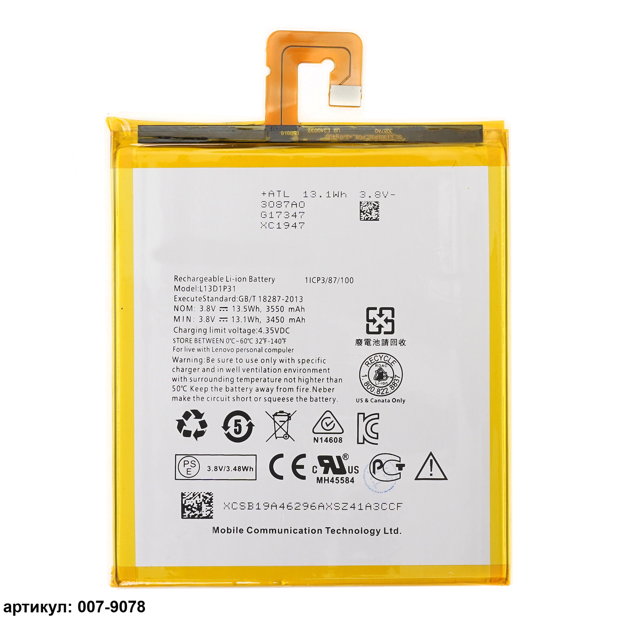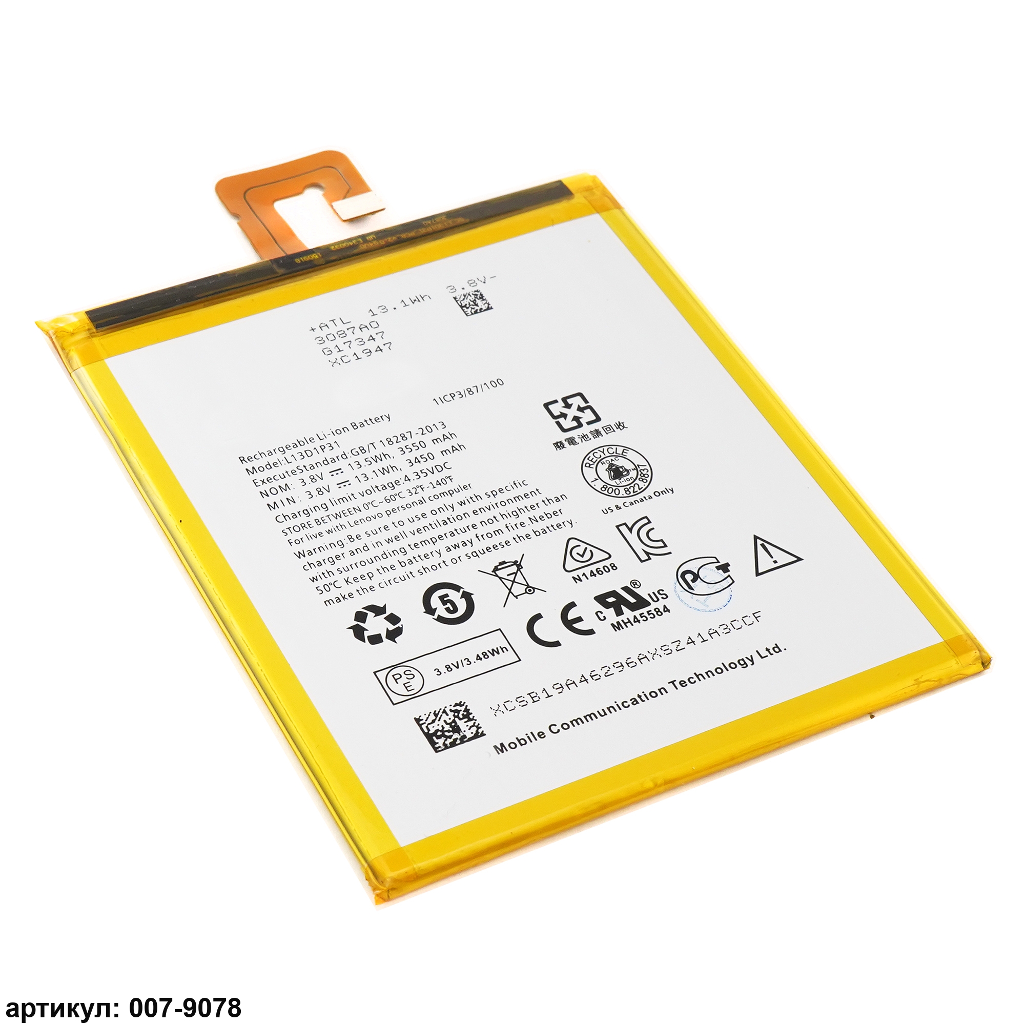 Подходит к планшетам: Lenovo Tab 3-7, IdeaTab A3500, S5000, Tab 2 A7-30, Tab 3 TB3-730X,Совместимые p/n: L13D1P31, 5A78C03058, SB18C05900, SB19A46296, SB18C03762, SB19A46297