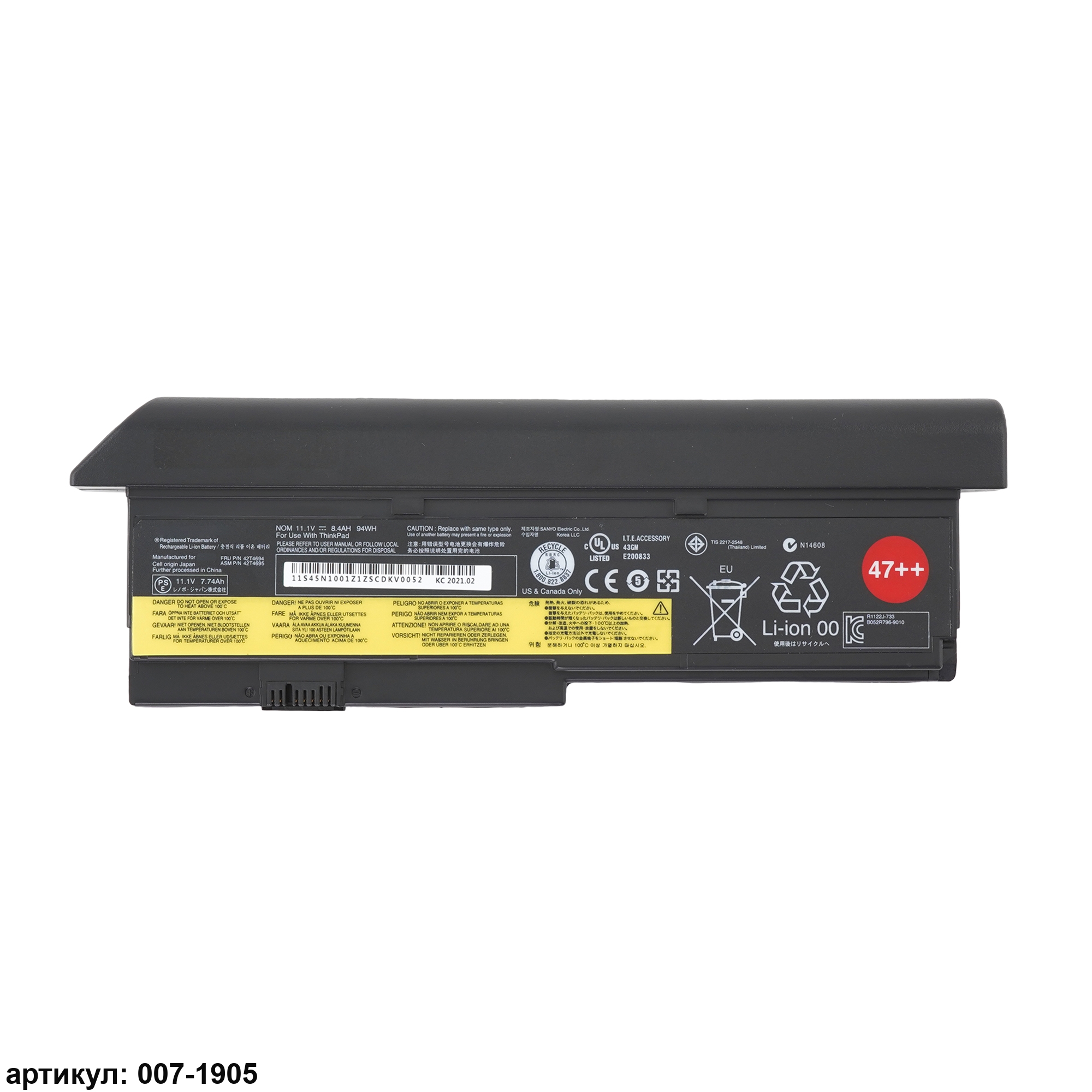 Подходит к сериям ноутбуков: Lenovo ThinkPad X200, X200S, X201, X201i, X201SСовместимые P/N: 42T4695, 42T4694, 42T4540, 42T4542, 42T4650, 42T4696, 42T4649