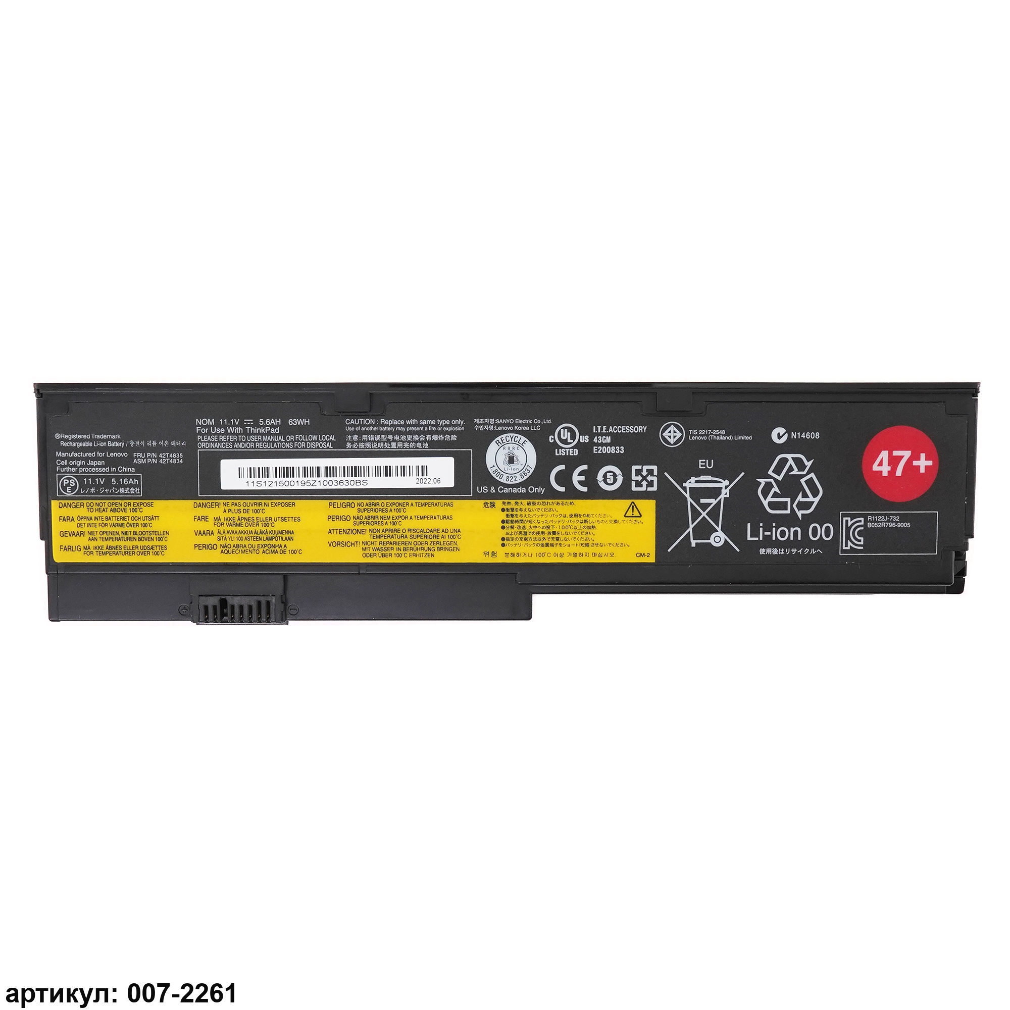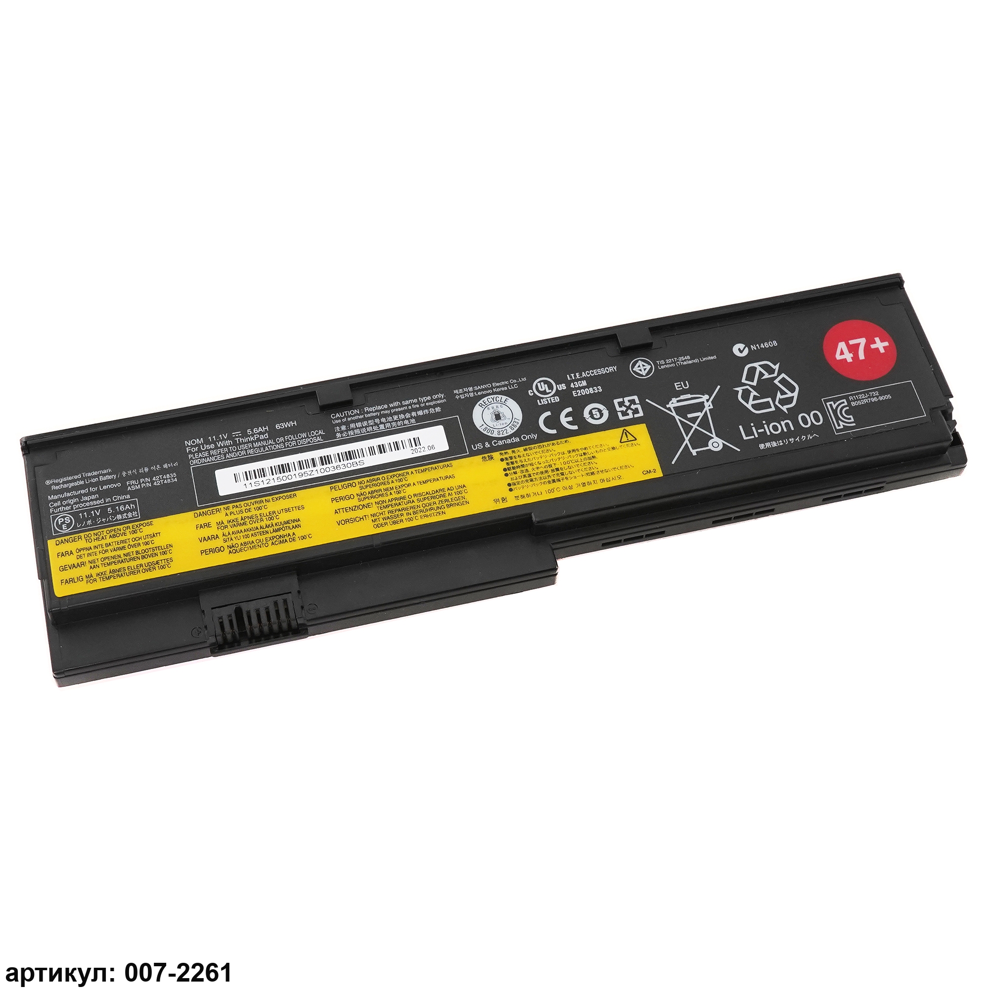 Подходит к сериям ноутбуков: Lenovo ThinkPad X200, X200S, X201, X201S, X201Совместимые P/N: 42T4834, 42T4535, 42T4543, 42T4650, 42T4534, 42T4835