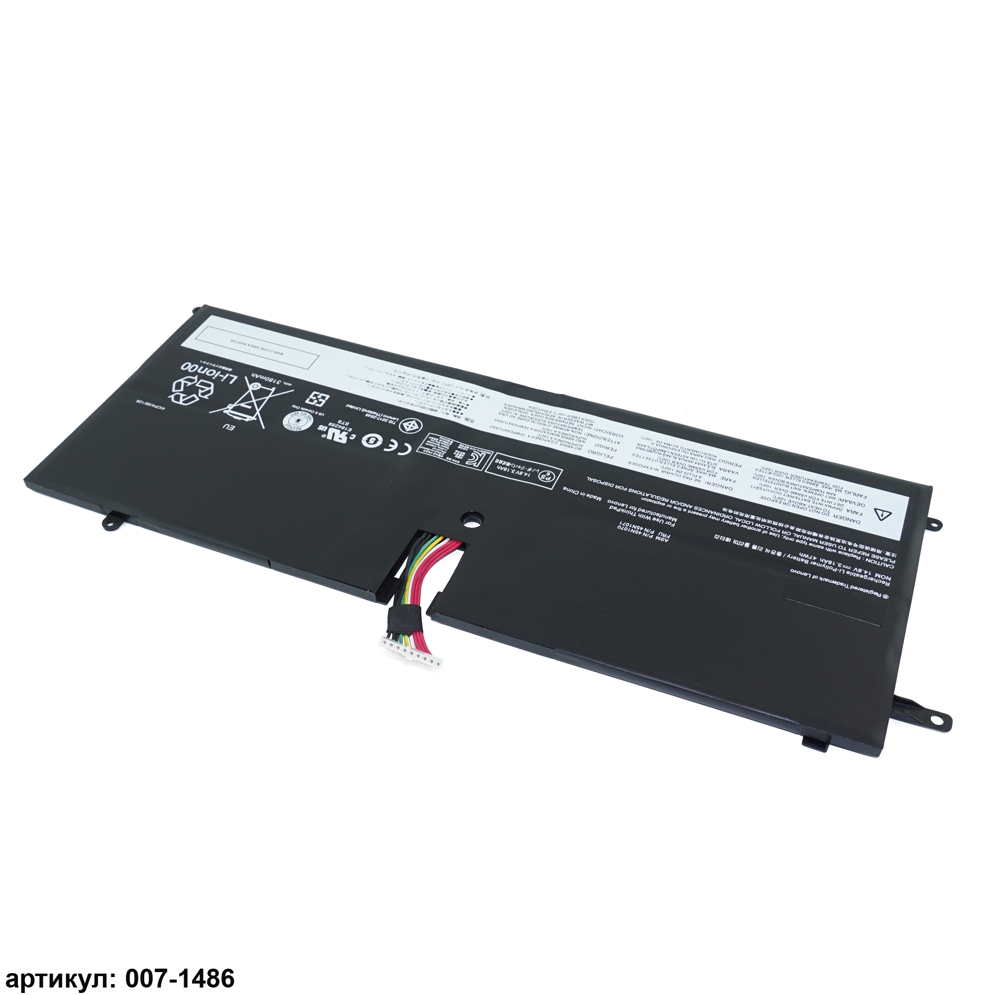 Подходит к сериям ноутбуков: Lenovo ThinkPad X1 Carbon 1st Gen (3443, 3444, 3448, 3460, 3462, 3463)Совместимые P/N: 45N1070, 45N1071, 4ICP4/51/95