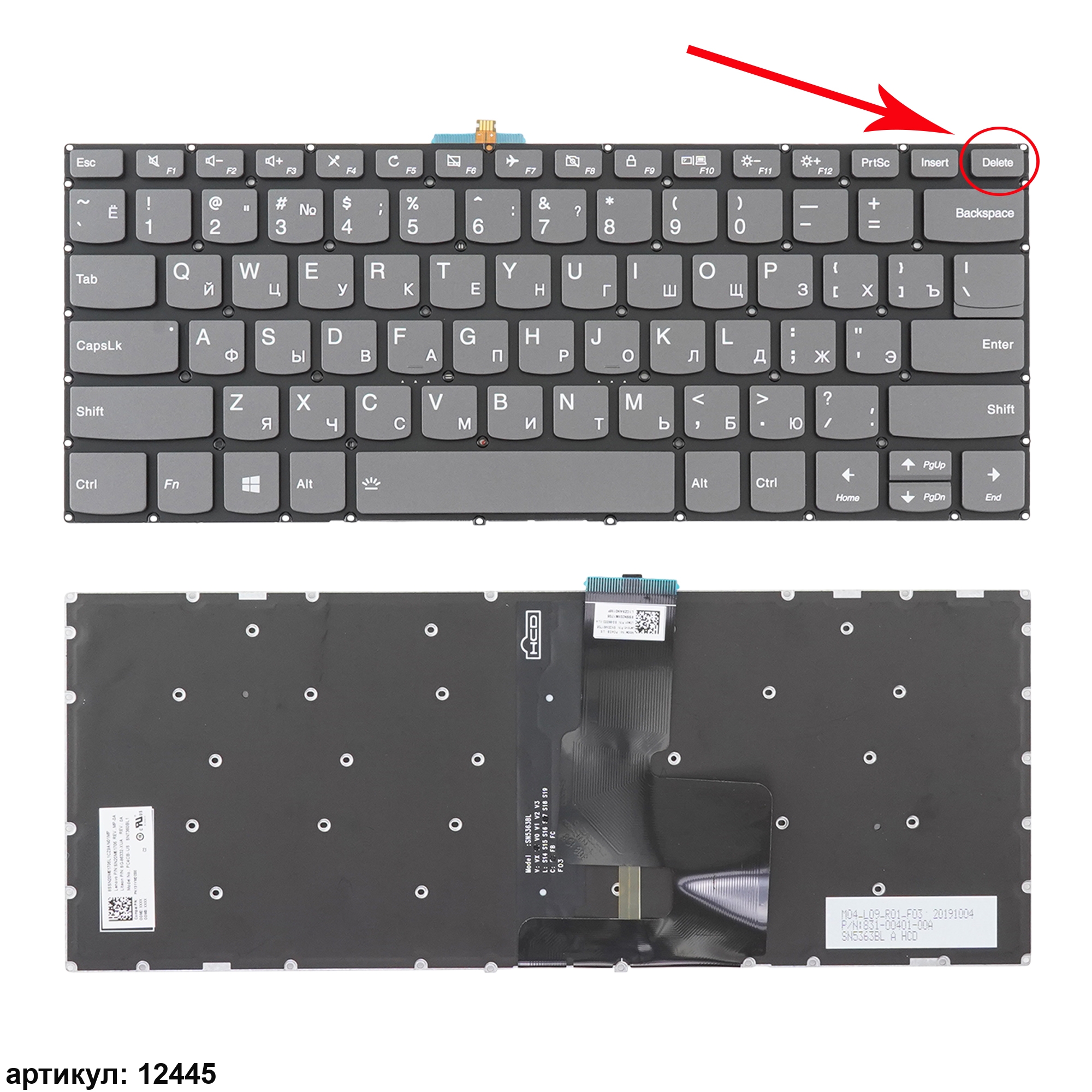Обязательно сравнивайте Вашу клавиатуру с представленной на фотографии: направление и приблизительная длина шлейфа, крепления, размер кнопки Enter. Одинаковые модели ноутбуков могут использовать разные модификации клавиатур. Даже если на сайте модель, парт-номер стоят в совместимых, она может не подойти вам.