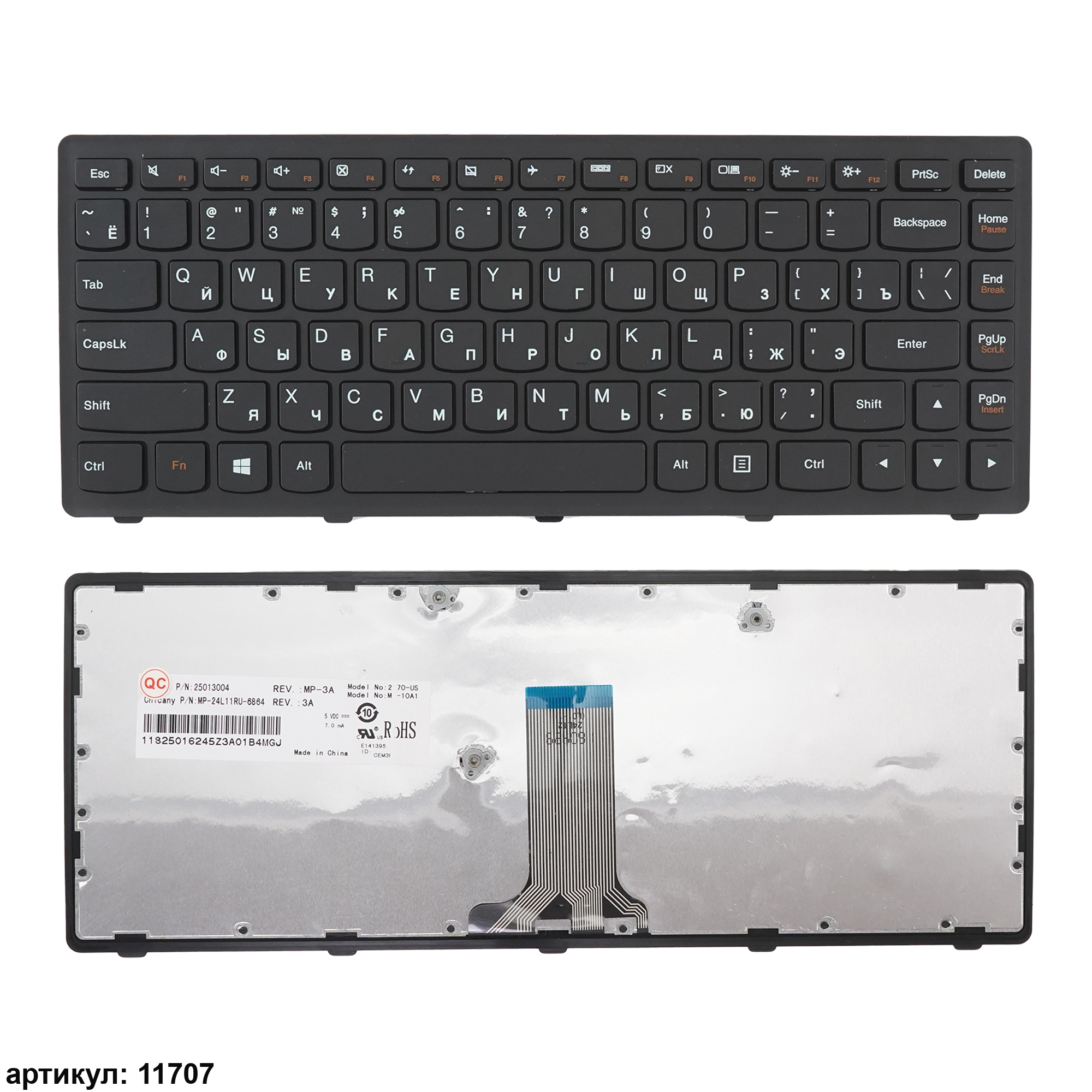 Обязательно сравнивайте Вашу клавиатуру с представленной на фотографии: направление и приблизительная длина шлейфа, крепления, размер кнопки Enter. Одинаковые модели ноутбуков могут использовать разные модификации клавиатур. Даже если на сайте модель, парт-номер стоят в совместимых, она может не подойти вам.