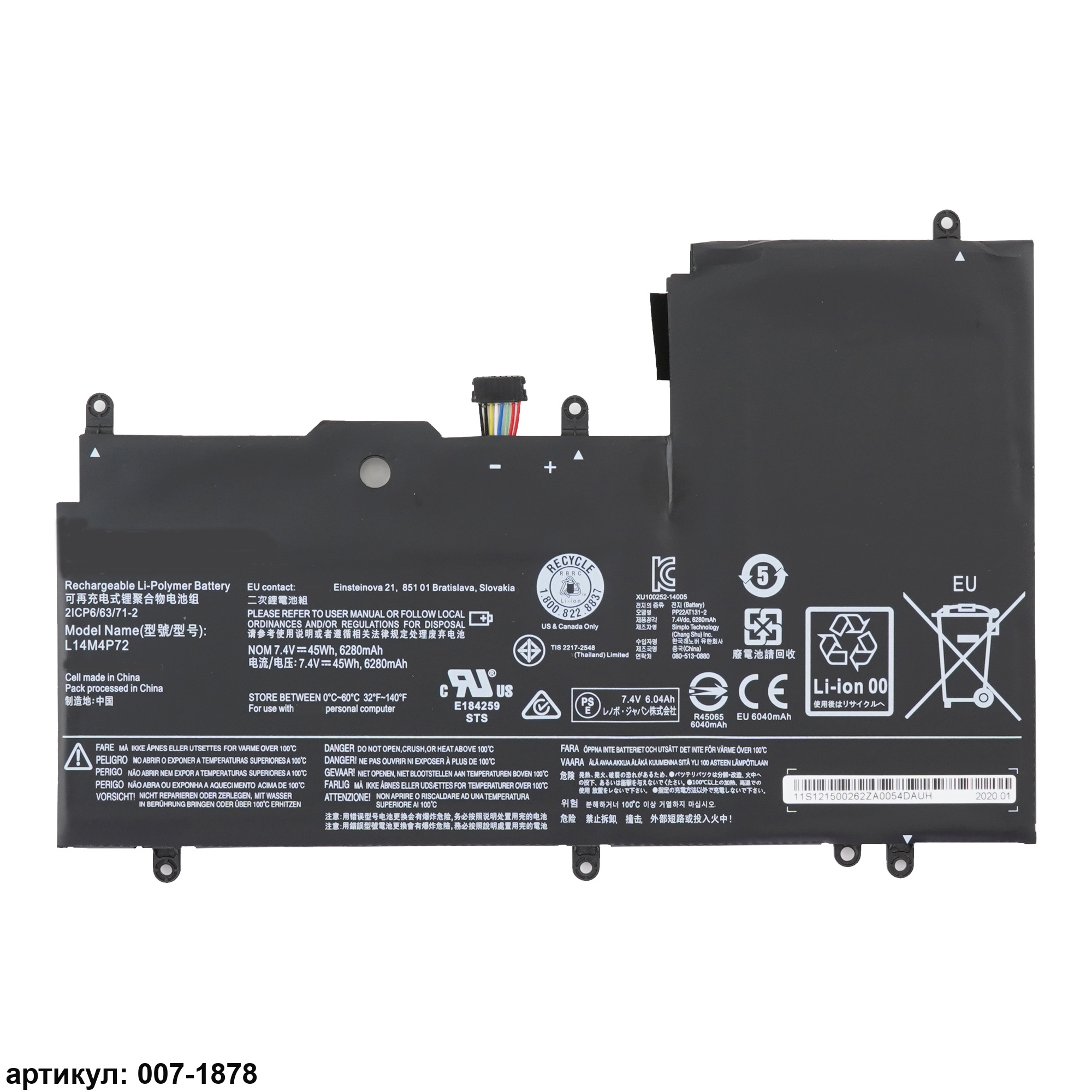 Совместимые P/N: L14M4P72, L14S4P72, 5B10K10226, 5B10K10224, 5B10G84689, 5B10G75095