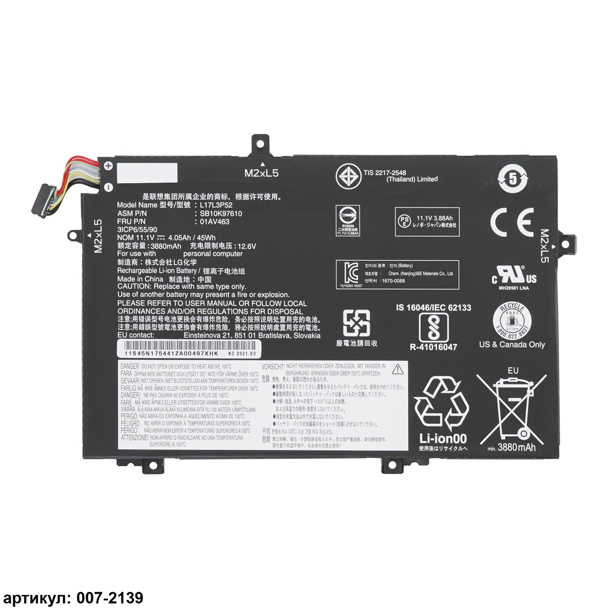 Совместимые P/N: L17L3P52, 1AV463, 01AV465, 01AV466, 5B10W13896, 01AV464, 5B10W13897, 5B10W13895, SB10K97610