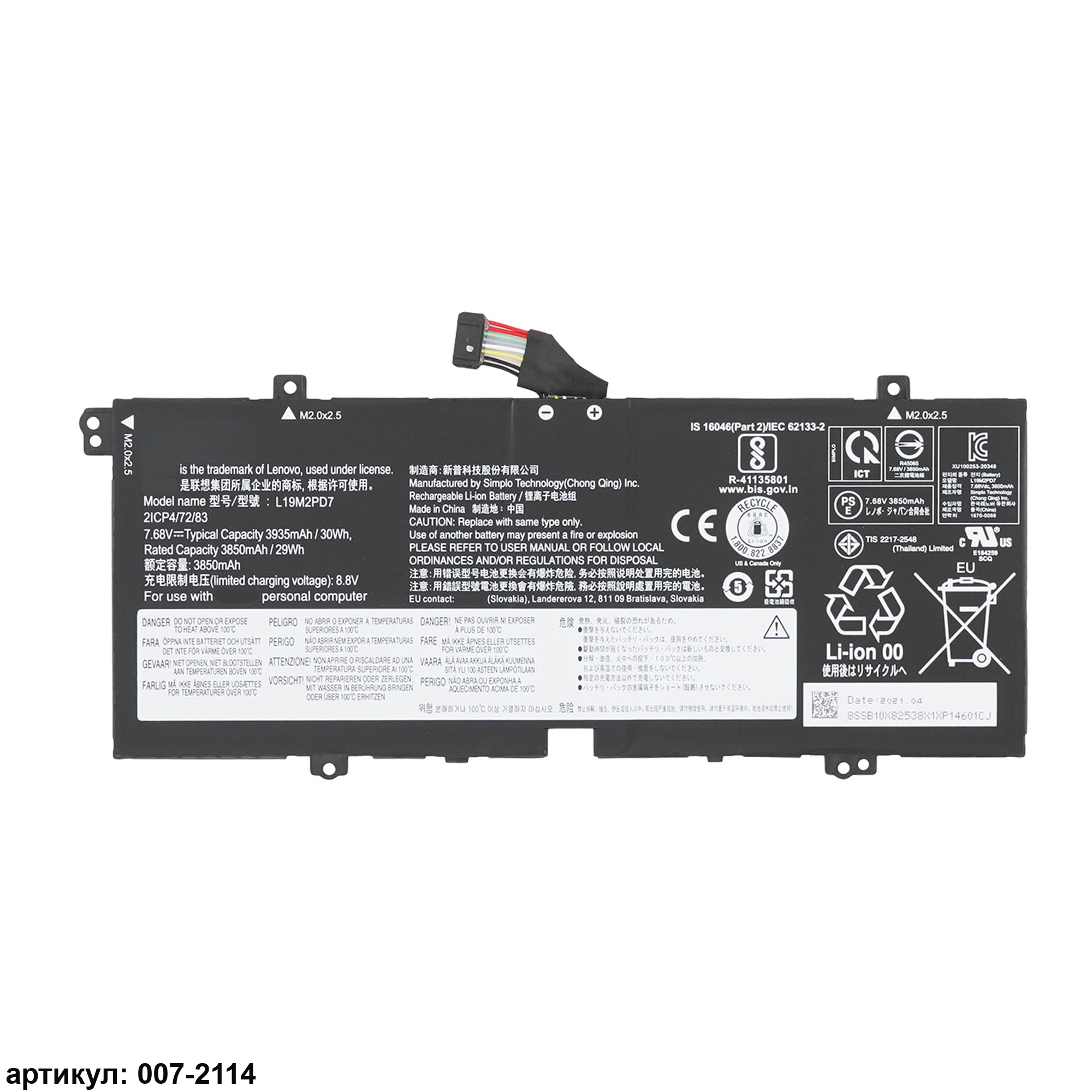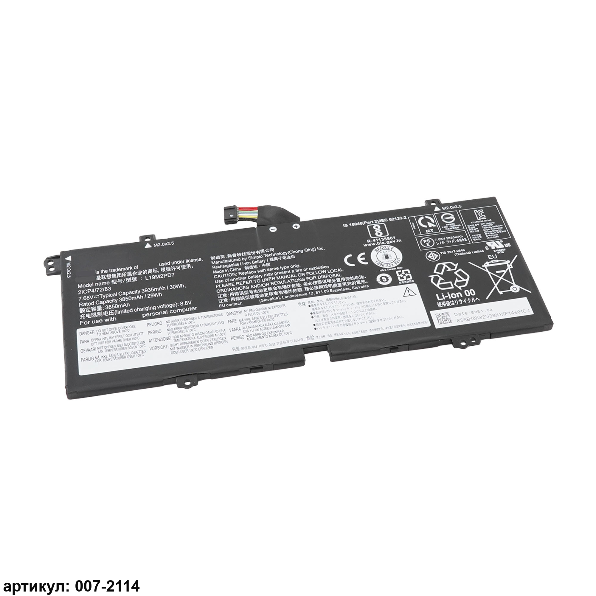 Совместимые P/N: L19M2PD7,L19C2PD7, 5B10X82537, 5B10X82536
