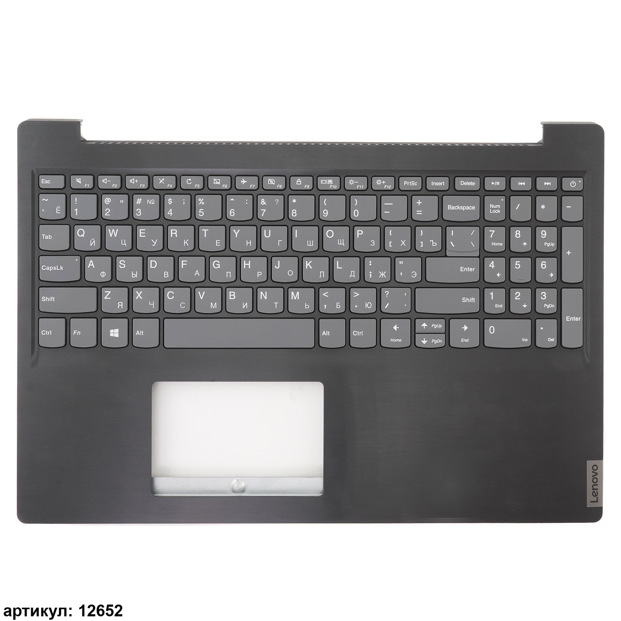 Клавиатура для ноутбука Lenovo S145-15IWL серая с черным топкейсом, без тачпада