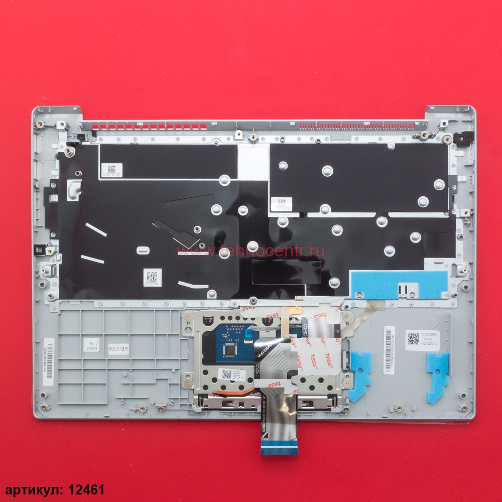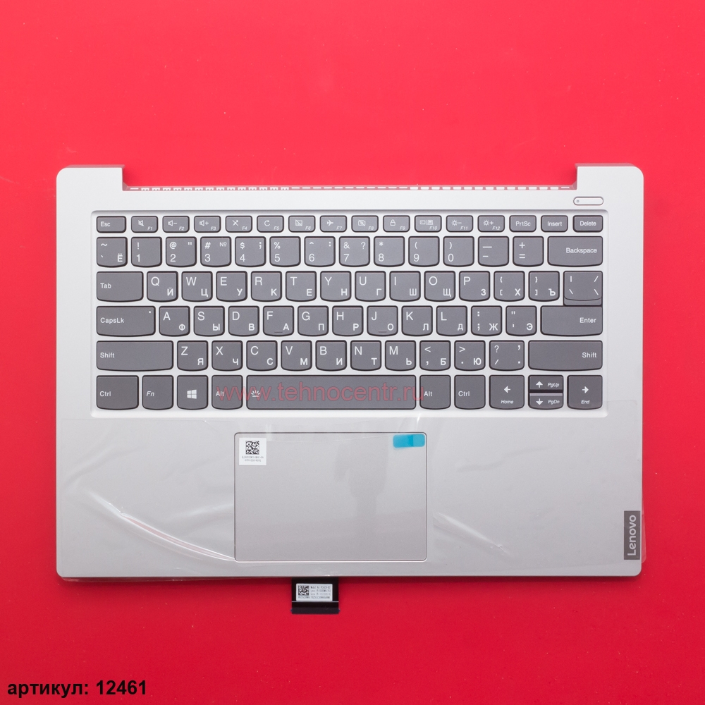Клавиатура для ноутбука Lenovo S340-14 серая с серебристым топкейсом, с подсветкой